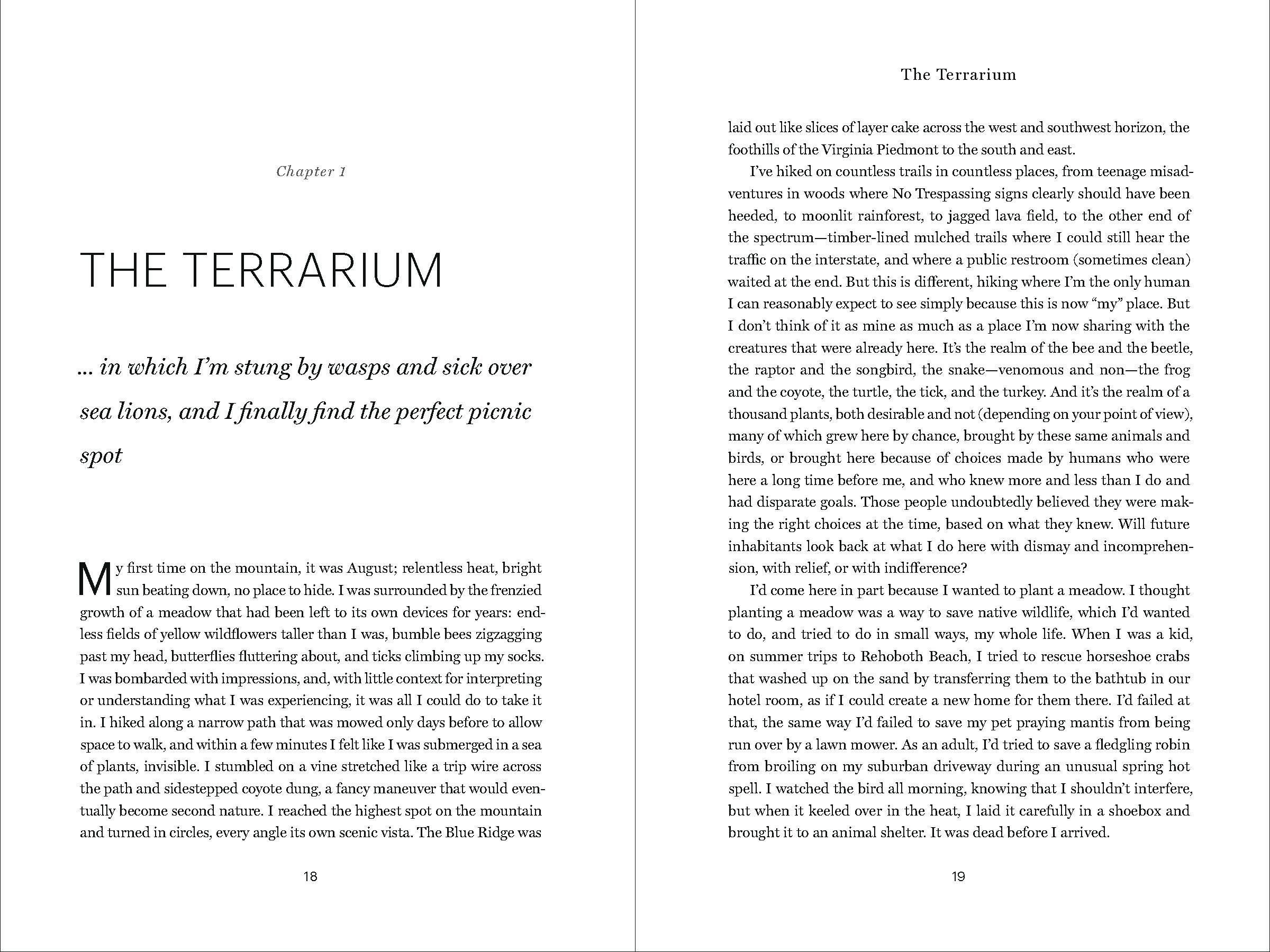 With humor, humility, and awe, one woman attempts to restore 200 acres of farmland long gone-to-seed in the Blue Ridge Mountains, facing her own limitations while getting to know a breathtaking corner of the natural world.