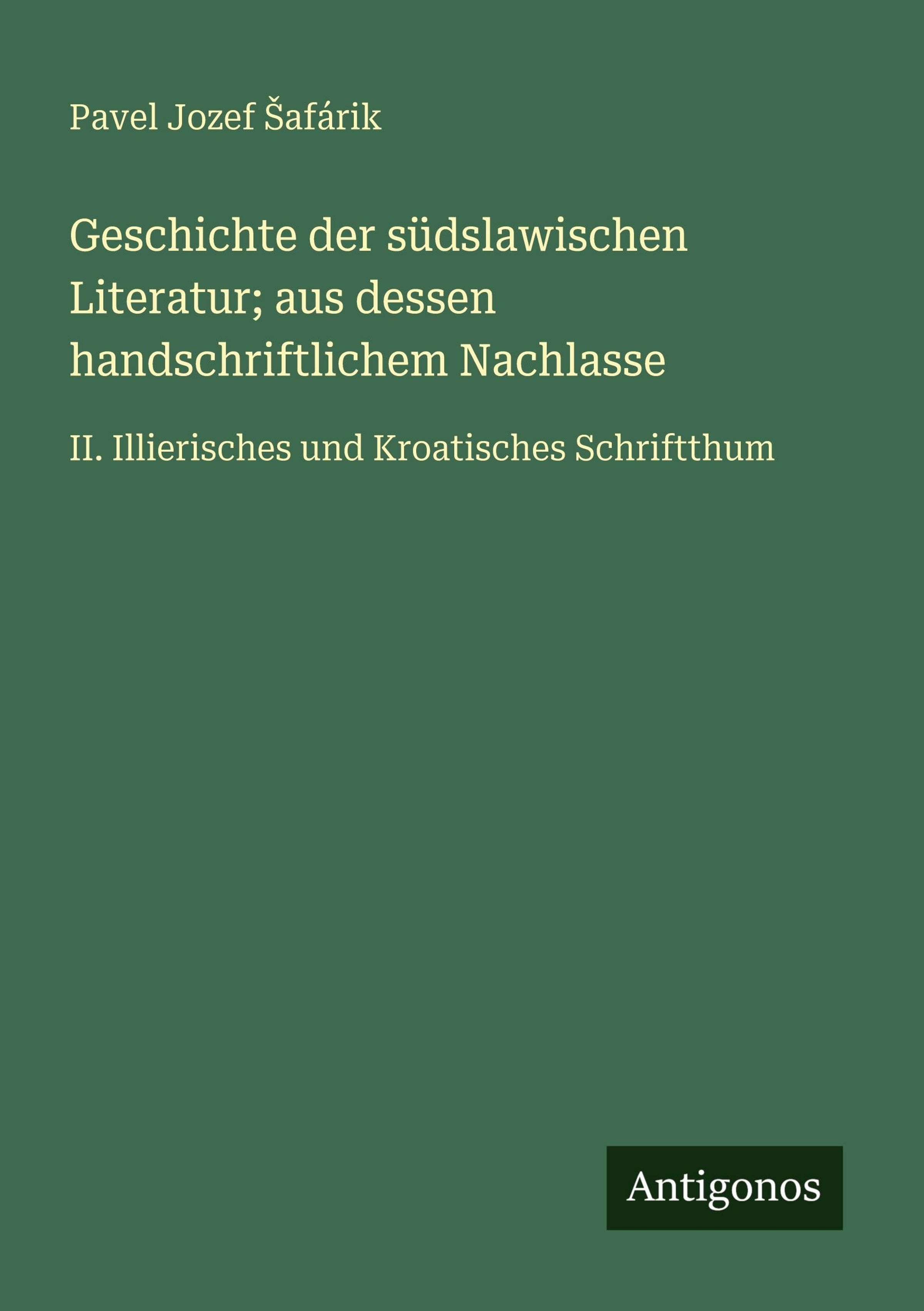 Pavel Jozef ¿Afárik: Geschichte der südslawischen Literatur; aus dessen handschriftlichem Nachlasse, Kartoniert / Broschiert