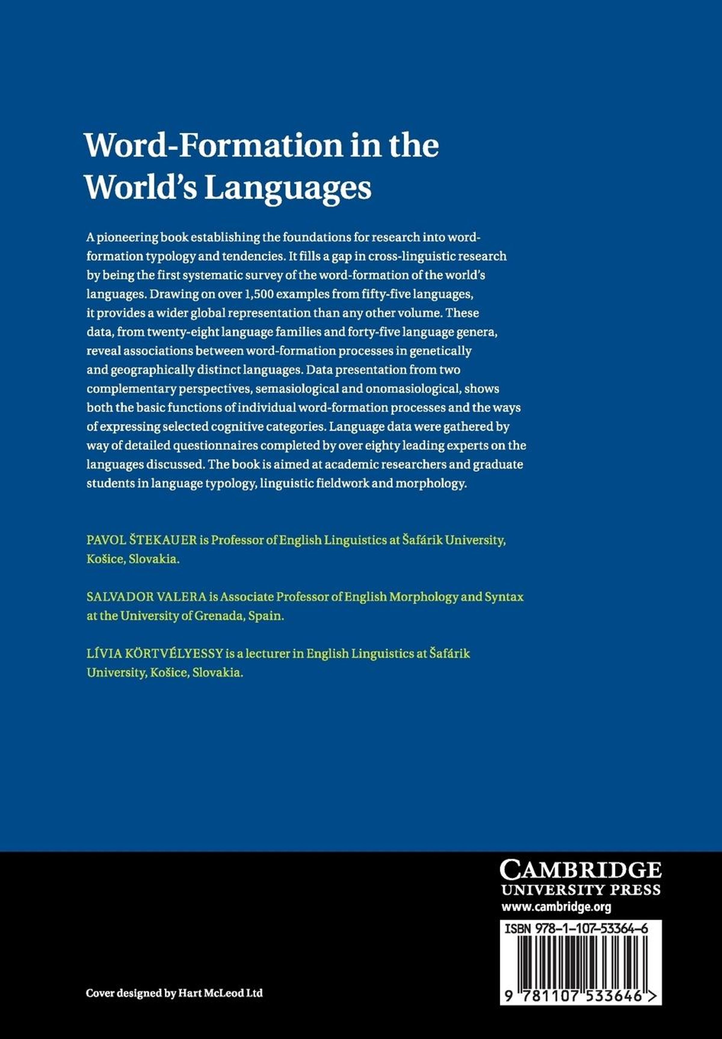 A pioneering book establishing the foundations for research into word-formation typology and tendencies. It fills a gap in cross-linguistic research by being the first systematic survey of the word-formation of the world's languages. Drawing on over 1500 examples from fifty-five languages, it provides a wider global representation than any other volume. This data, from twenty-eight language families and forty-five language genera, reveals associations between word-formation processes in genetically and geographically distinct languages. Data presentation from two complementary perspectives, semasiological and onomasiological, shows both the basic functions of individual word-formation processes and the ways of expressing selected cognitive categories. Language data was gathered by way of detailed questionnaires completed by over eighty leading experts on the languages discussed. The book is aimed at academic researchers and graduate students in language typology, linguistic fieldwork and morphology.