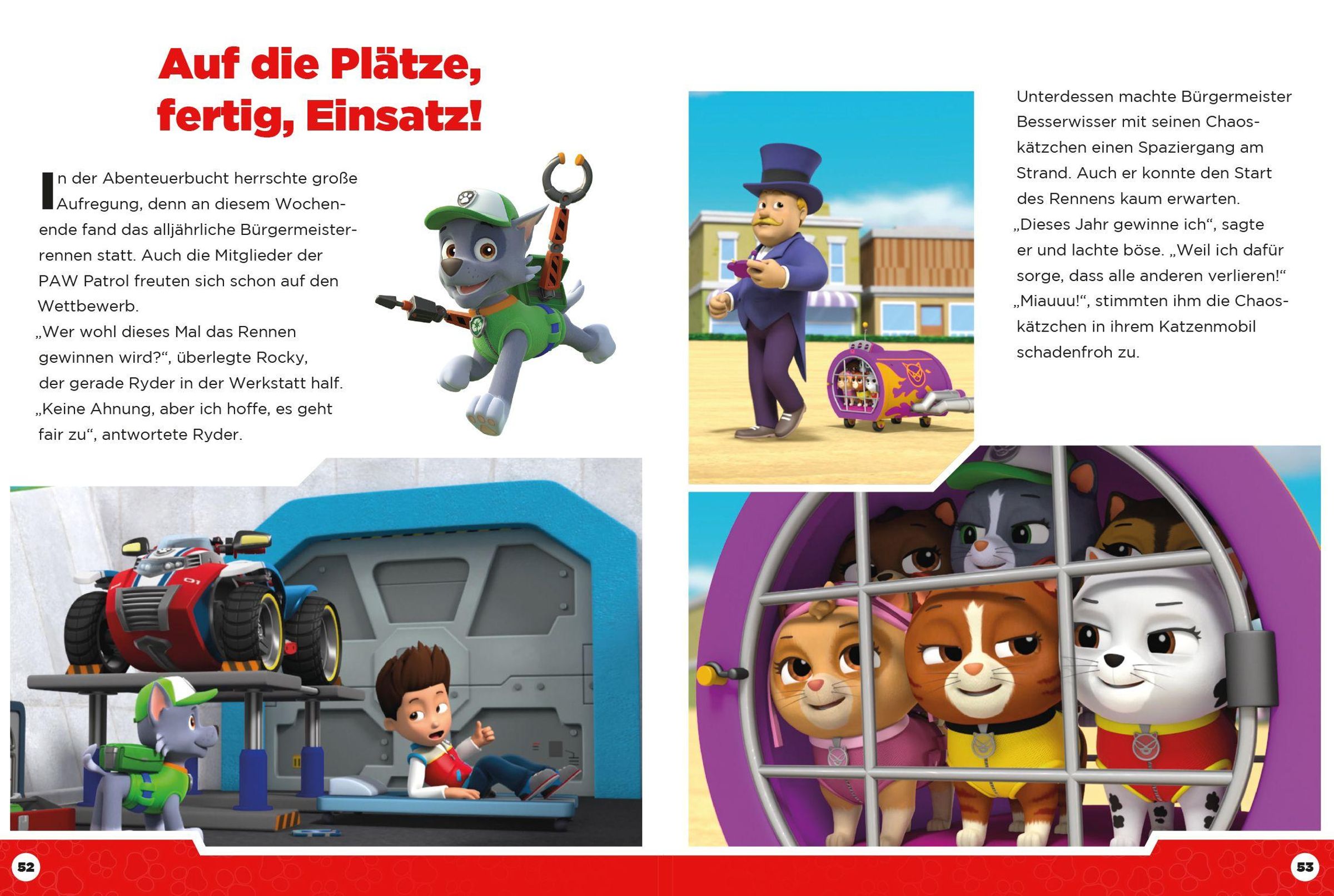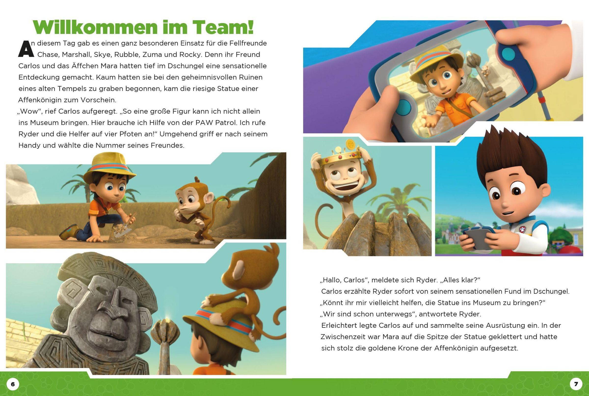 Einsatz für die PAW Patrol! Ob sie im Dschungel Carlos aus einer tiefen Grube befreien, auf einer Vulkaninsel Äffchen Mara und ihre Freunde retten oder bei dem Bürgermeisterrennen für Fairness sorgen - die Fellfreunde meistern so manche knifflige Situation. Erlebe drei spannende Rettungsaktionen mit den Helfern auf vier Pfoten!