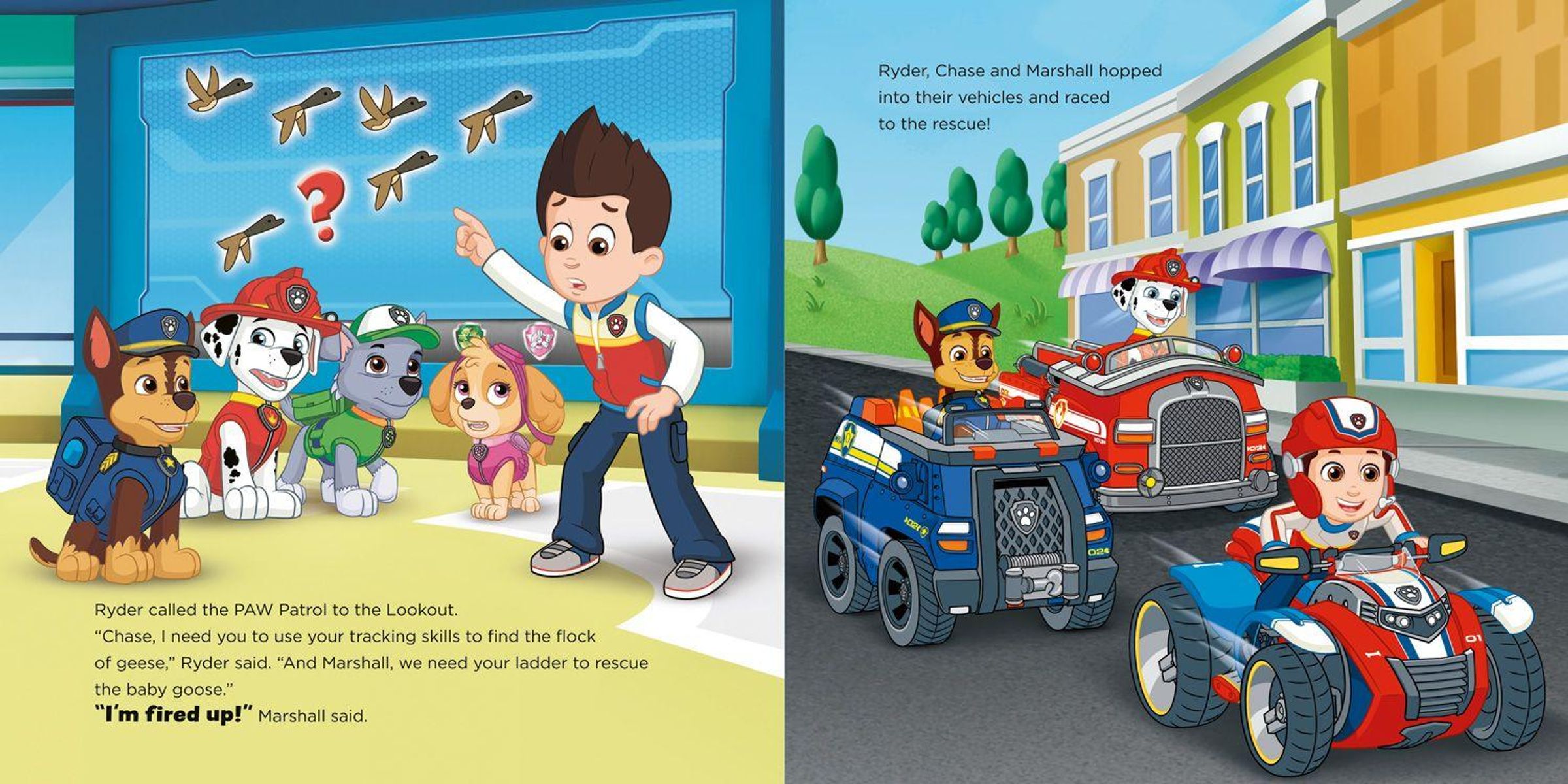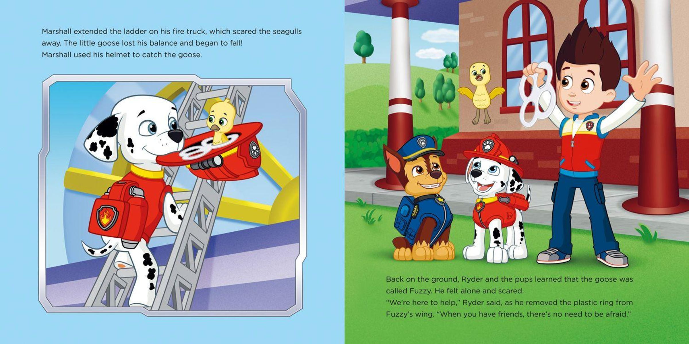 In this action-packed adventure, Marshall the fire pup befriends a goose who has lost his family. In his quest to help, Marshall discovers that even heroes get scared ... Luckily, Ryder and the whole PAW Patrol team are there to support their friend and help him face his fears! Teamwork really does make the dream work!