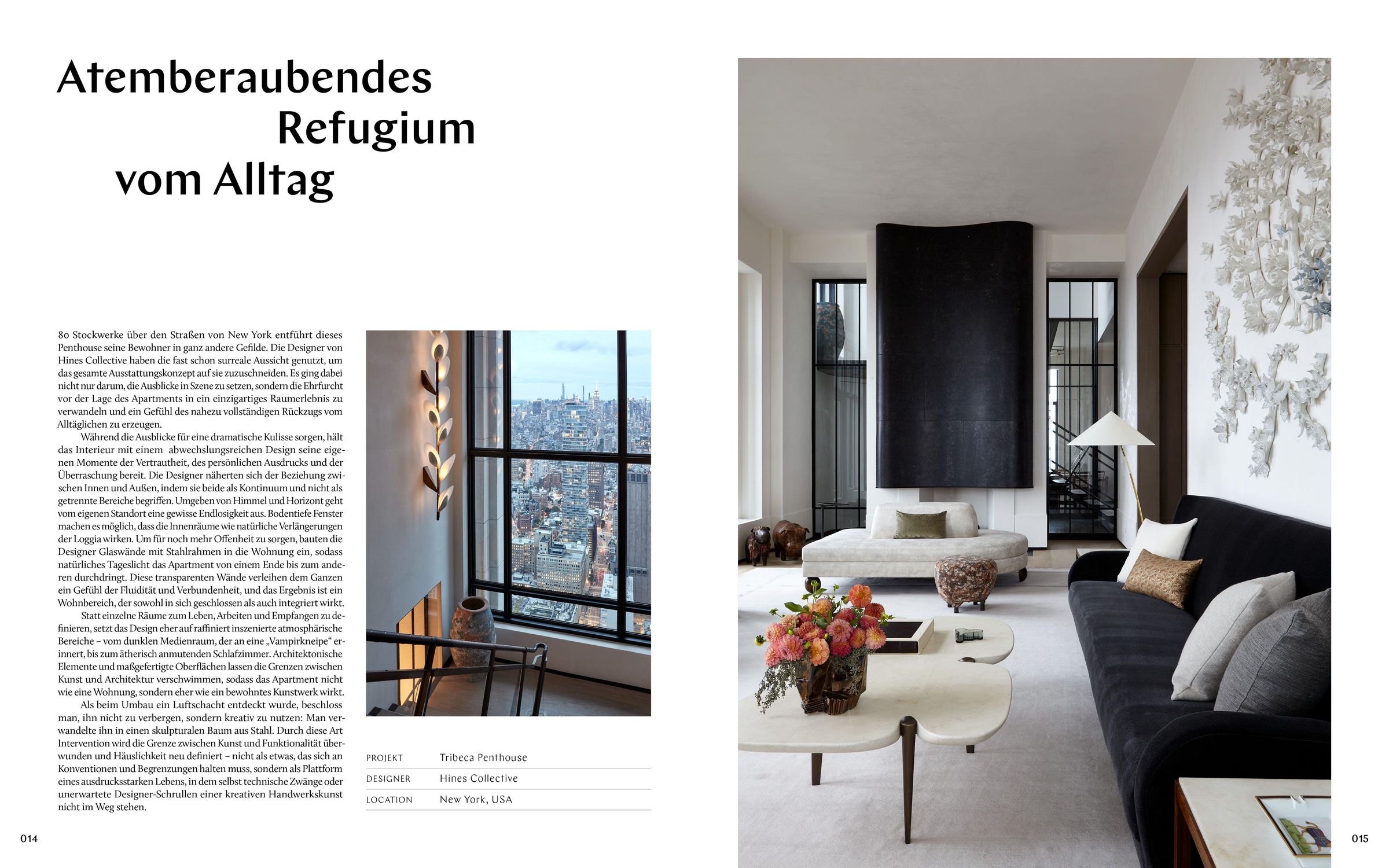 Das Leben über den Dächern der Stadt hat seinen ganz eigenen Reiz: der weite Blick, das besondere Licht, das Gefühl, zugleich entrückt und geborgen zu sein. Penthouse Panorama spürt genau dieser Faszination nach - und zeigt, wie die Höhe Räume, Maßstäbe und Gewohnheiten verändert. Mal skulptural inszeniert, mal reduziert und minimalistisch: Die hier vorgestellten Interieurs erzählen von der Spannung zwischen Architektur und Emotion. Sie machen sichtbar, wie Wohnen in der Höhe neue Formen von Intimität und Perspektive eröffnet.