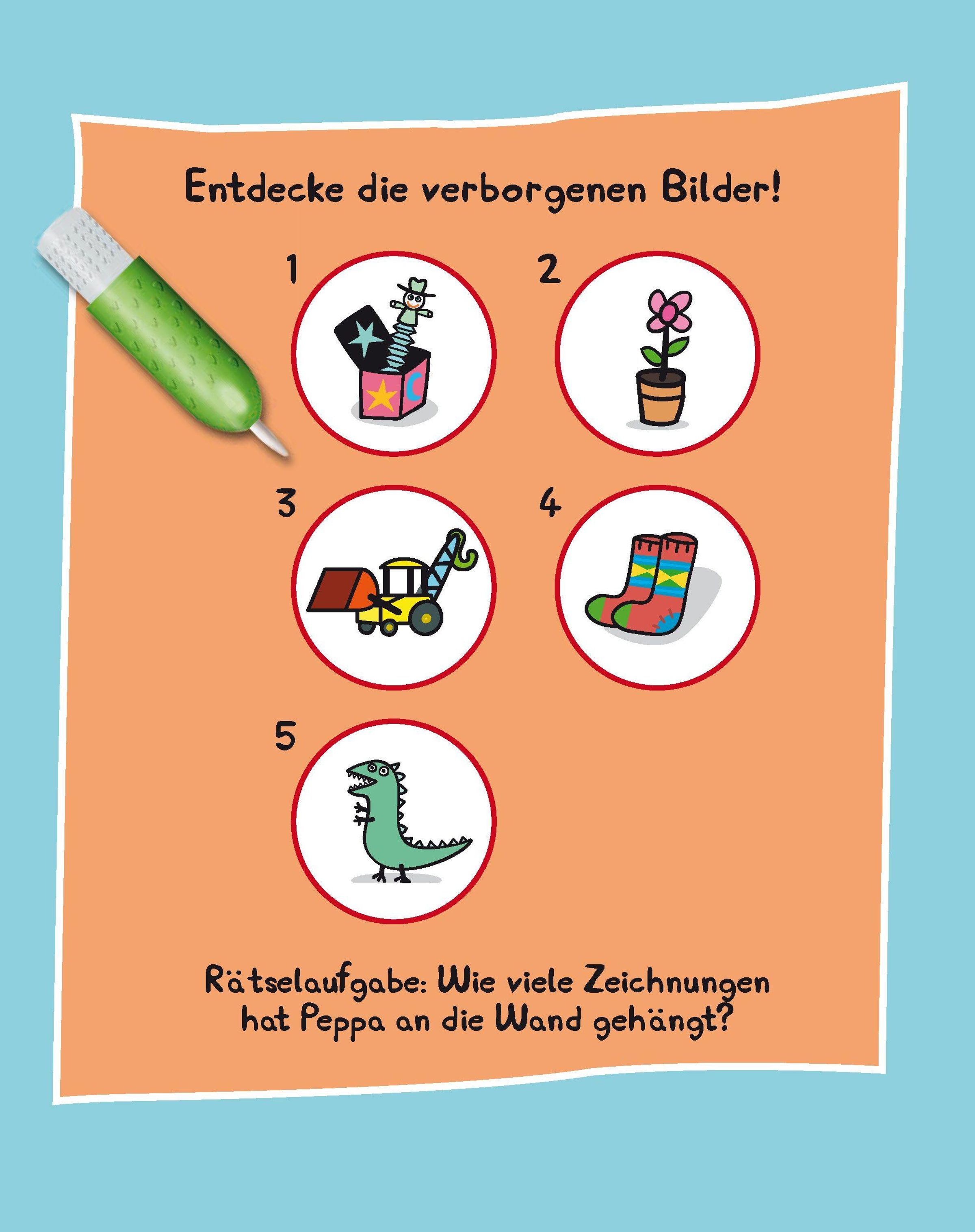 Mit dem verzauberten Wassermalspaß mit Peppa und ihren Freunden erweckt man die magischen Bilder rund um Peppa, Schorch, der Familie Wutz und den anderen Lieblingen vom grünen Hügelland zum Leben! Einfach den Stift mit Wasser befüllen, über die Seiten streichen und schon erscheinen plötzlich die lustigen Figuren aus der Serie - in Farbe! Zusätzlich sind auf jedem Bild zuvor unsichtbare Elemente verborgen. So entdecken kleine Künstler lustige Bilder und spannende Rätsel, die es zu lösen gilt.