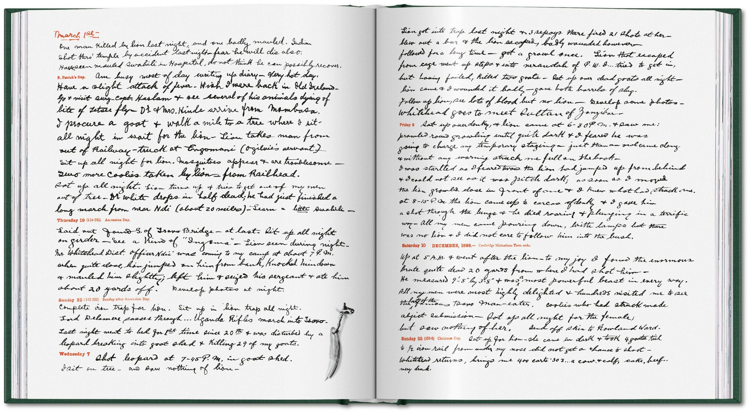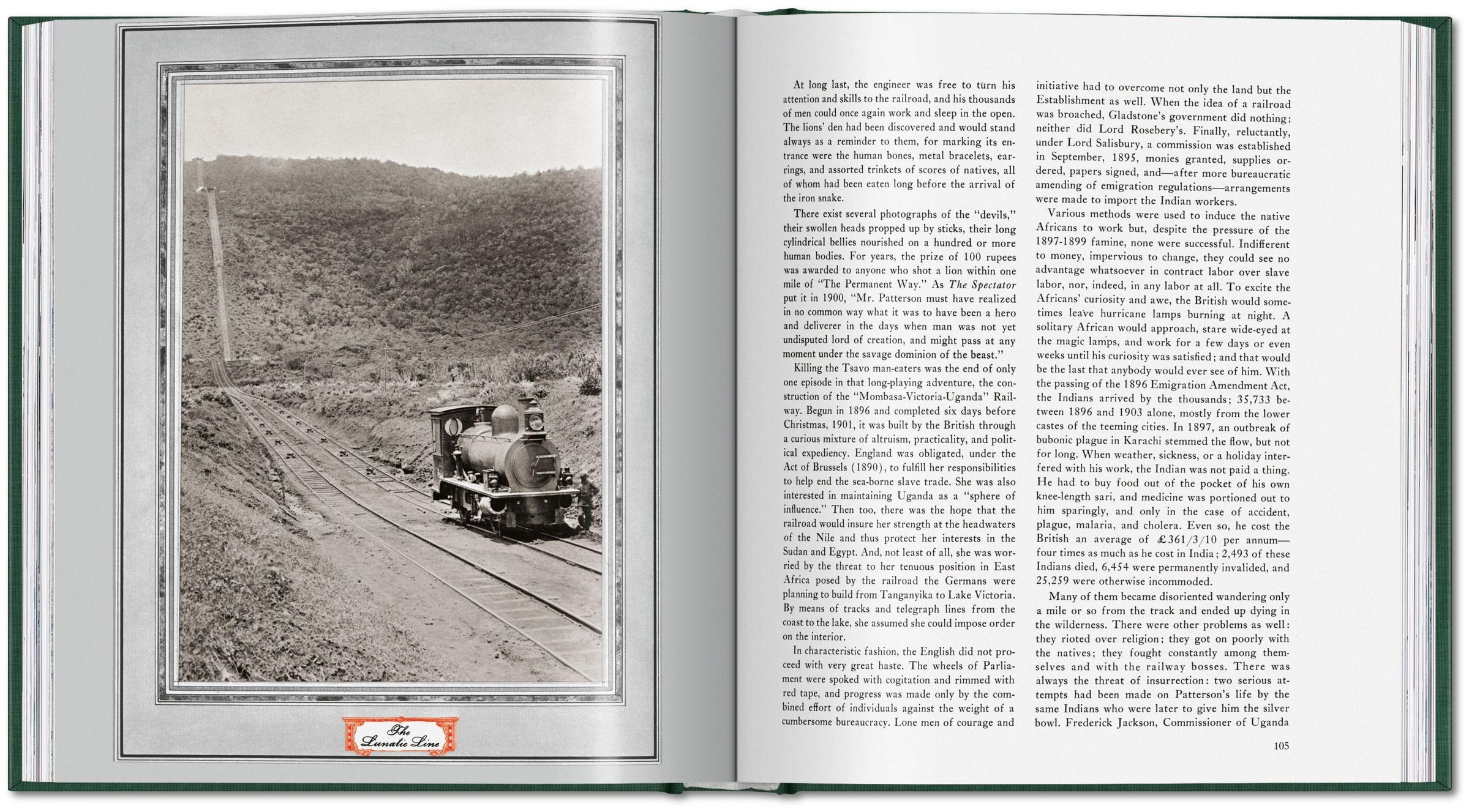Über zwei Jahrzehnte arbeitete Peter Beard an diesem, seinem wichtigsten und essentiellstem Werk , das seitdem immer wieder mit neuem Material aktualisiert wurde. Beards eigene Fotos und Schriften werden durch historische Aufnahmen und Zitate ergänzt, welche die Saga jener Entdecker, Forscher, Missionare und Großwildjäger erzählen, die auf der Suche nach Abenteuern und als "Botschafter des Fortschritts" im Laufe des 20. Jahrhunderts das Gesicht Afrikas für immer entstellten: Theodore Roosevelt, Frederick Courteney Selous, Karen Blixen (Isak Dinesen), Philip Percival, J. A. Hunter, Ernest Hemingway undJ. H. Patterson .