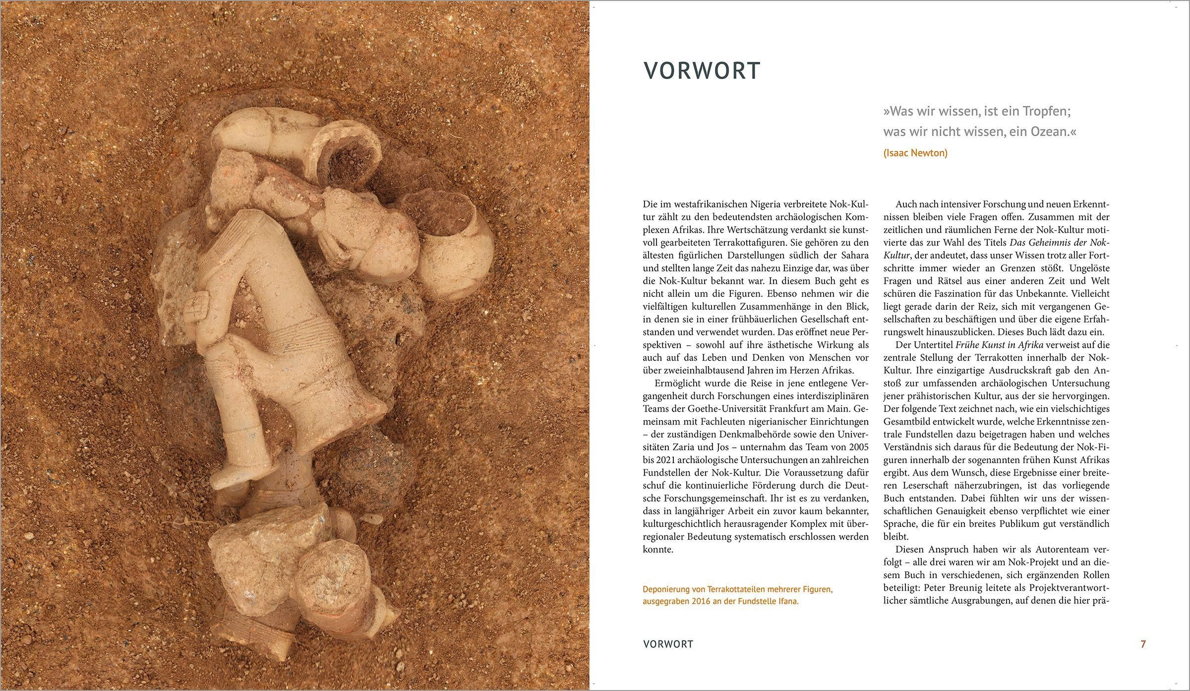 Erst durch die jahrelangen Forschungen von Archäologen und Archäobotanikern der Frankfurter Goethe-Universität entstand ein facettenreiches Bild der Nok-Kultur. Im Mittelpunkt steht die Entschlüsselung der gesellschaftlichen Funktion einer in der Vorgeschichte der Menschheit beispiellosen Konzentration kunstvoller Tonfiguren.