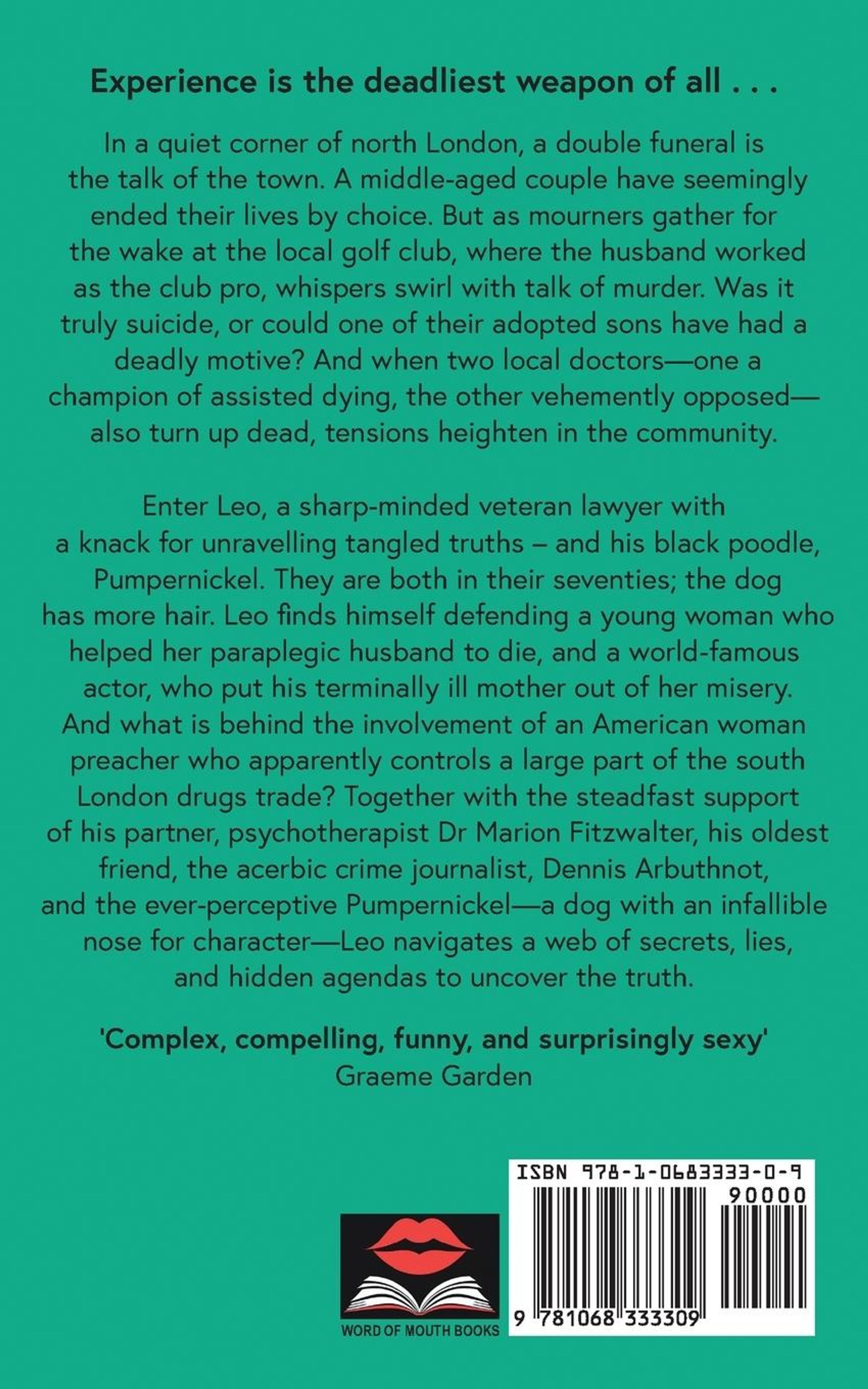 In a quiet corner of north London, a double funeral is the talk of the town. A middle-aged couple have seemingly ended their lives by choice. But as mourners gather for the wake at the local golf club, where the husband worked as the club pro, whispers swirl with talk of murder. Was it truly suicide, or could one of their adopted sons have had a deadly motive? And when two local doctors-one a champion of assisted dying, the other vehemently opposed-also turn up dead, tensions heighten in the community. Enter Leo, a sharp-minded veteran lawyer with a knack for unravelling tangled truths - and his black poodle, Pumpernickel. They are both in their seventies; the dog has more hair. Leo finds himself defending a young woman who helped her paraplegic husband to die, and a world-famous actor, who put his terminally ill mother out of her misery. And what is behind the involvement of an American woman preacher who apparently controls a large part of the south London drugs trade? Together with the steadfast support of his partner, psychotherapist Dr Marion Fitzwalter, and his oldest friend, the acerbic crime journalist, Dennis Arbuthnot, and the ever-perceptive Pumpernickel-a dog with an infallible nose for character-Leo navigates a web of secrets, lies, and hidden agendas to uncover the truth.