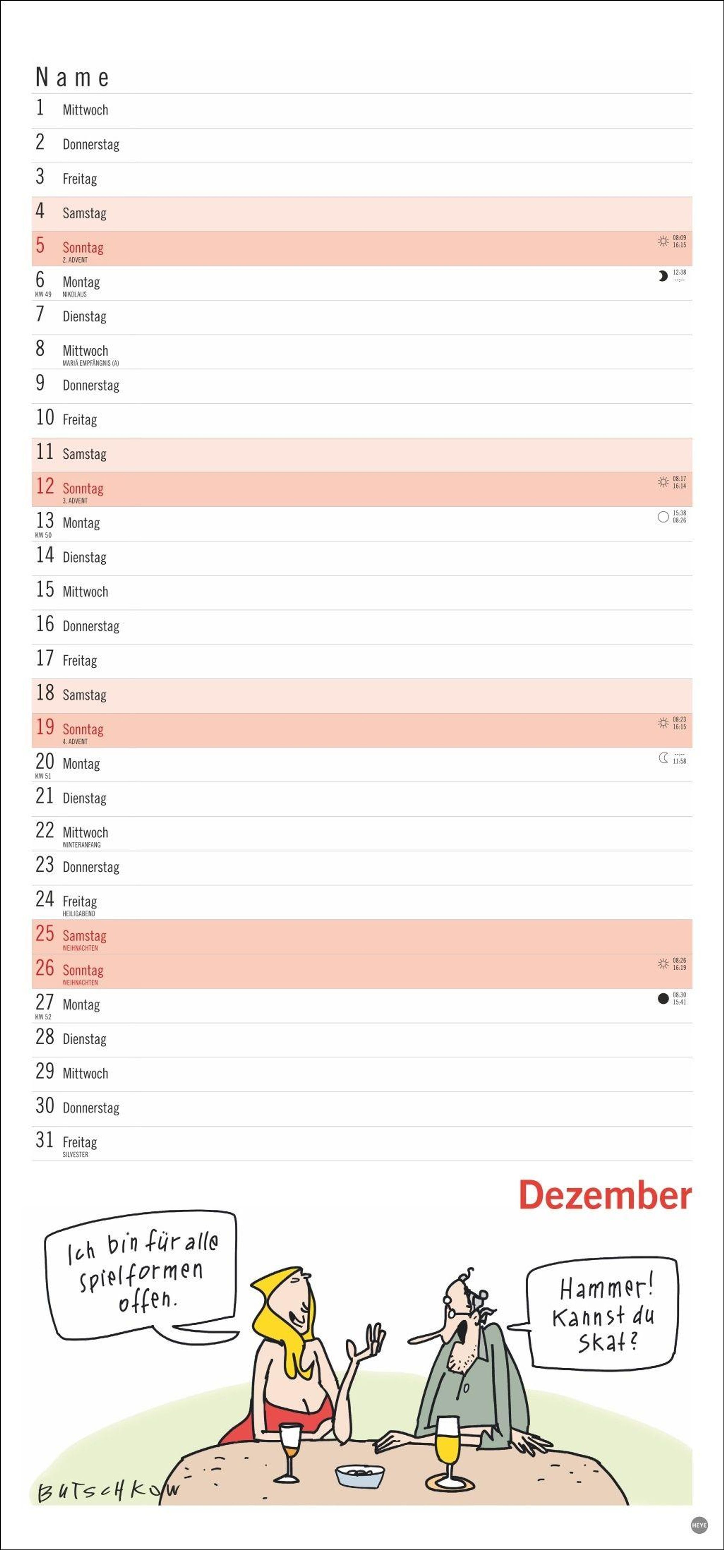 Gut gelaunt die Freizeitaktivitäten im Ruhestand planen: Monatskalender mit den herrlich-pointierten Peter Butschkow-Cartoons