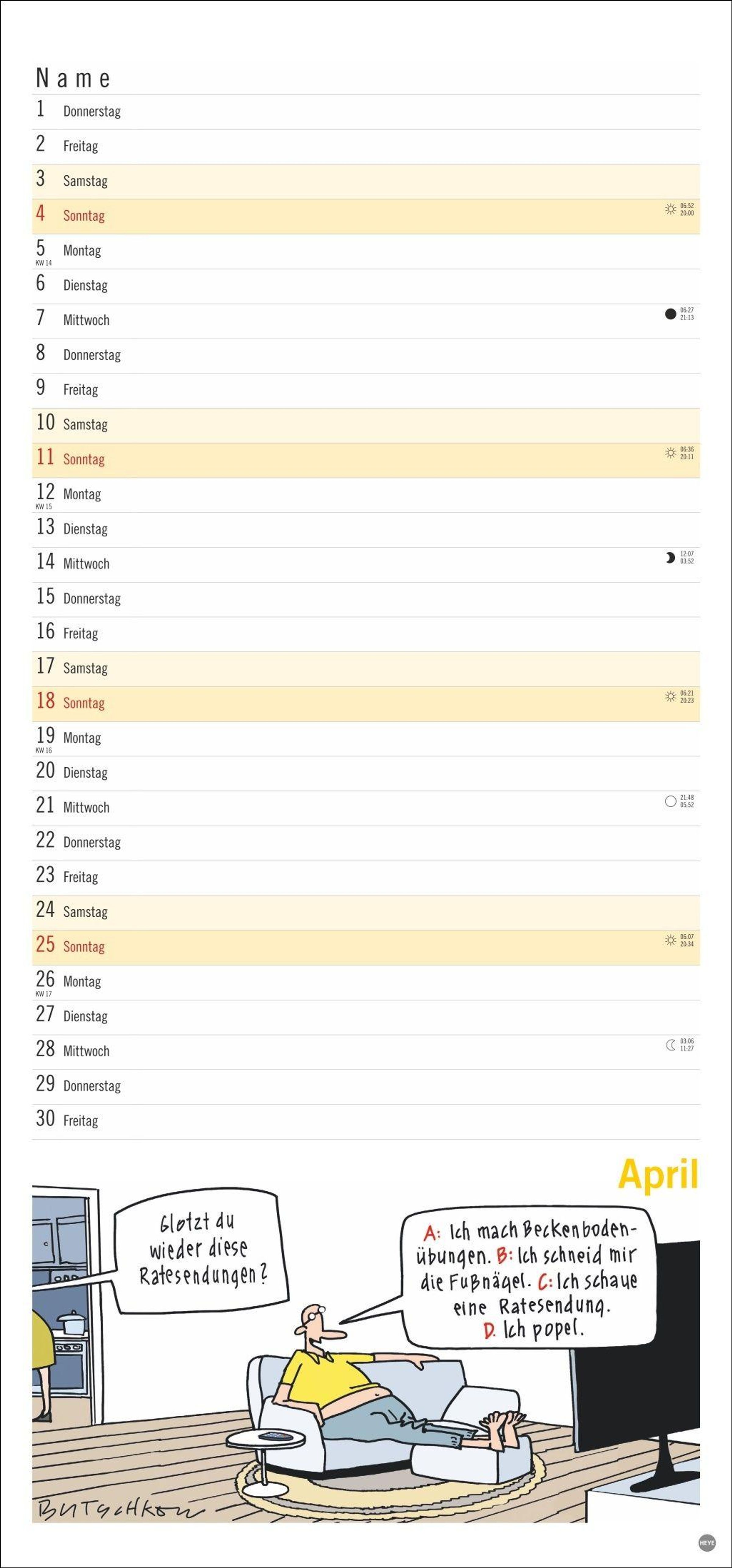 - Der humorvolle Rentner-Kalender mit Cartoons über das Leben im besten Alter. Freizeit-Planer mit freier Spalteneinteilung. 21 x 45 cm