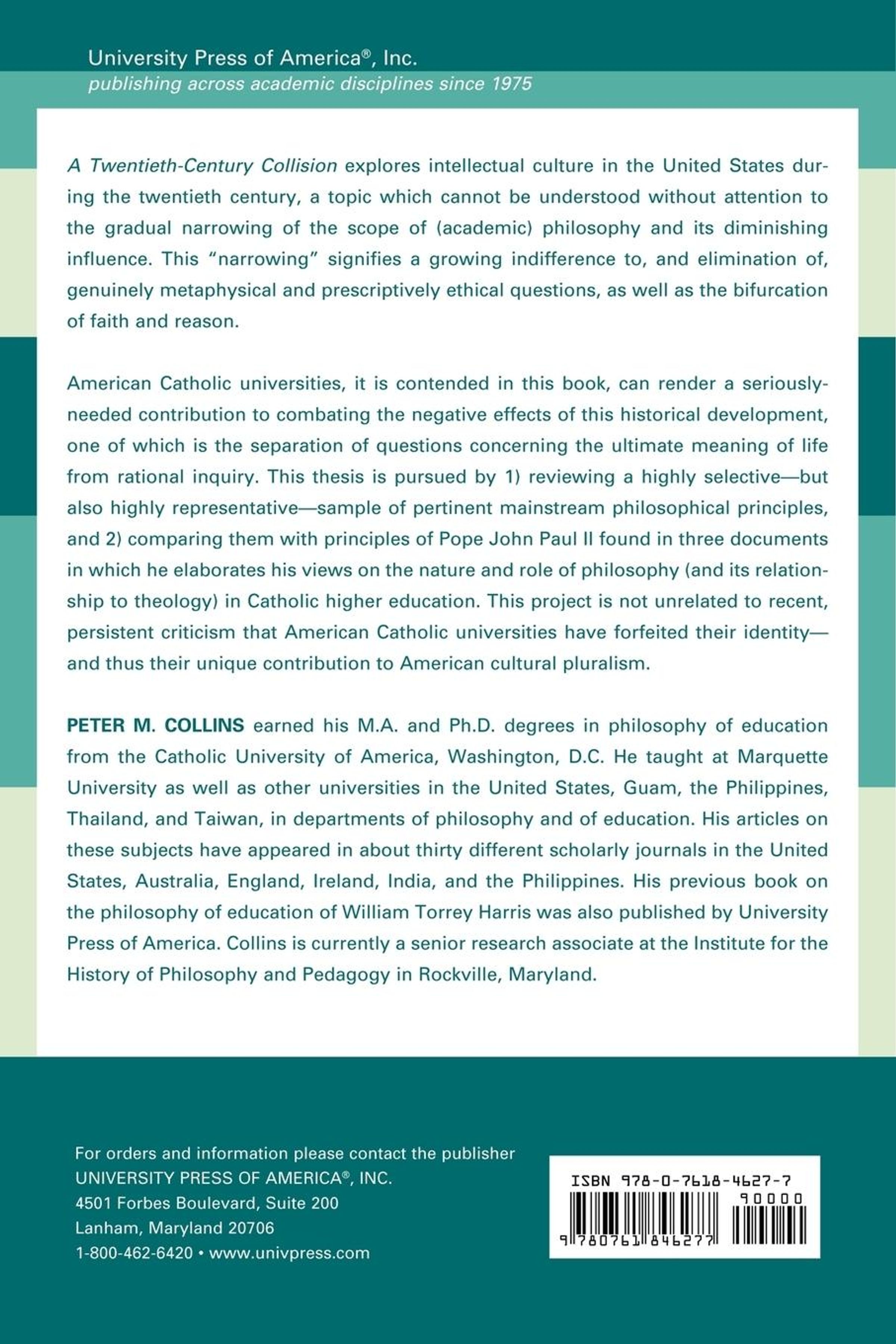 This book explores 20th-century intellectual culture in the United States, with attention to the gradual narrowing of the scope of (academic) philosophy and its diminishing influence. American Catholic universities, it is contended in this book, can render a seriously-needed contribution to combating the negative effects of this historical development.