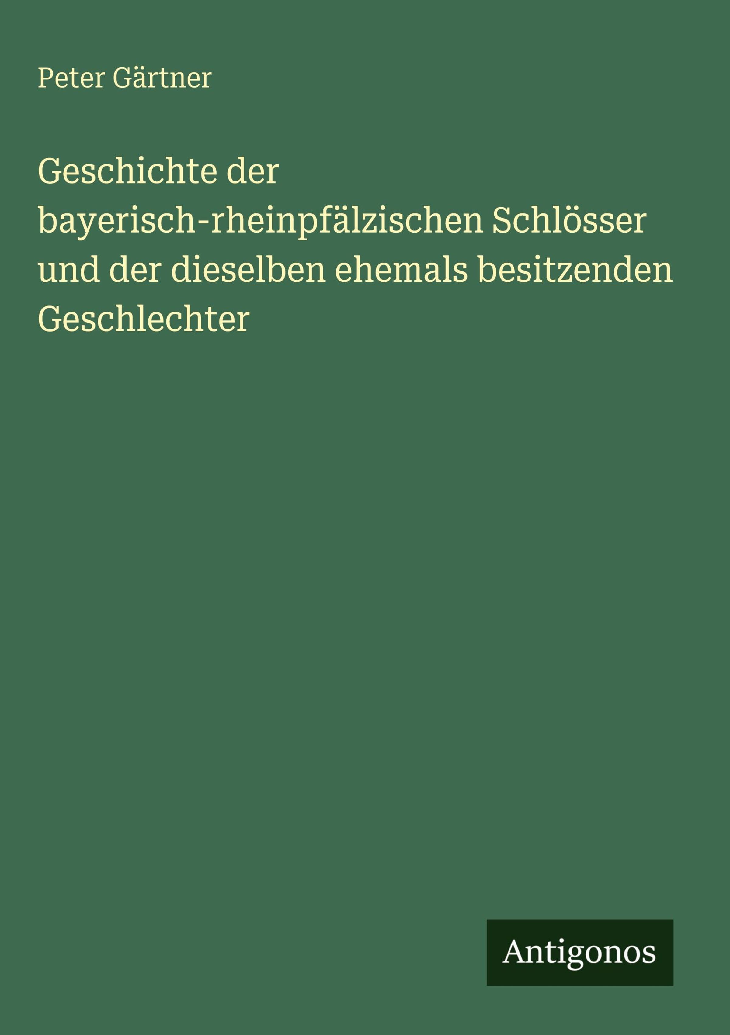 Peter Gärtner: Geschichte der bayerisch-rheinpfälzischen Schlösser und der dieselben ehemals besitzenden..., Gebunden