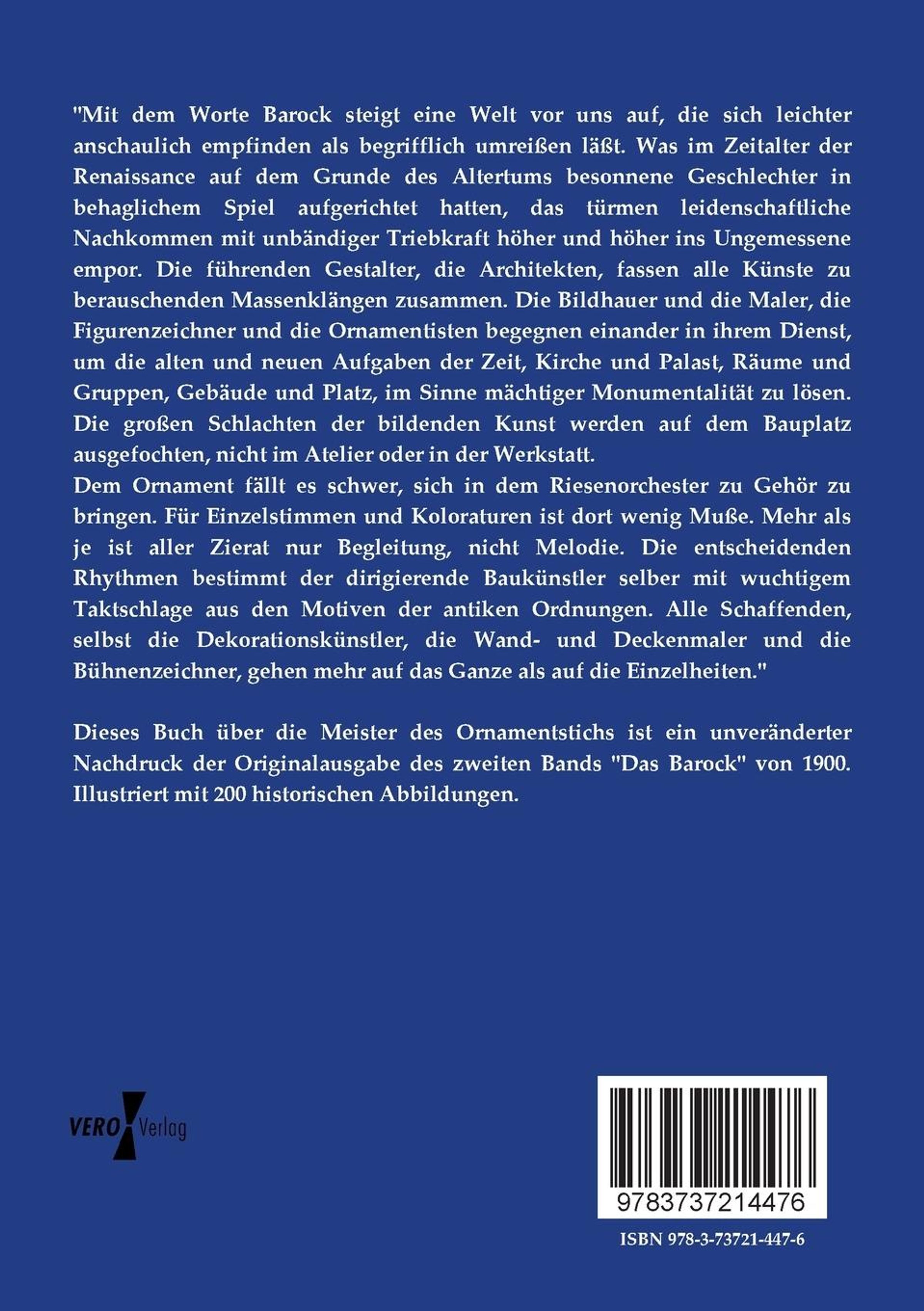 Dieses Buch über die Meister des Ornamentstichs ist ein unveränderter Nachdruck der Originalausgabe des zweiten Bands \"Das Barock\" von 1900. Illustriert mit 200 historischen Abbildungen.