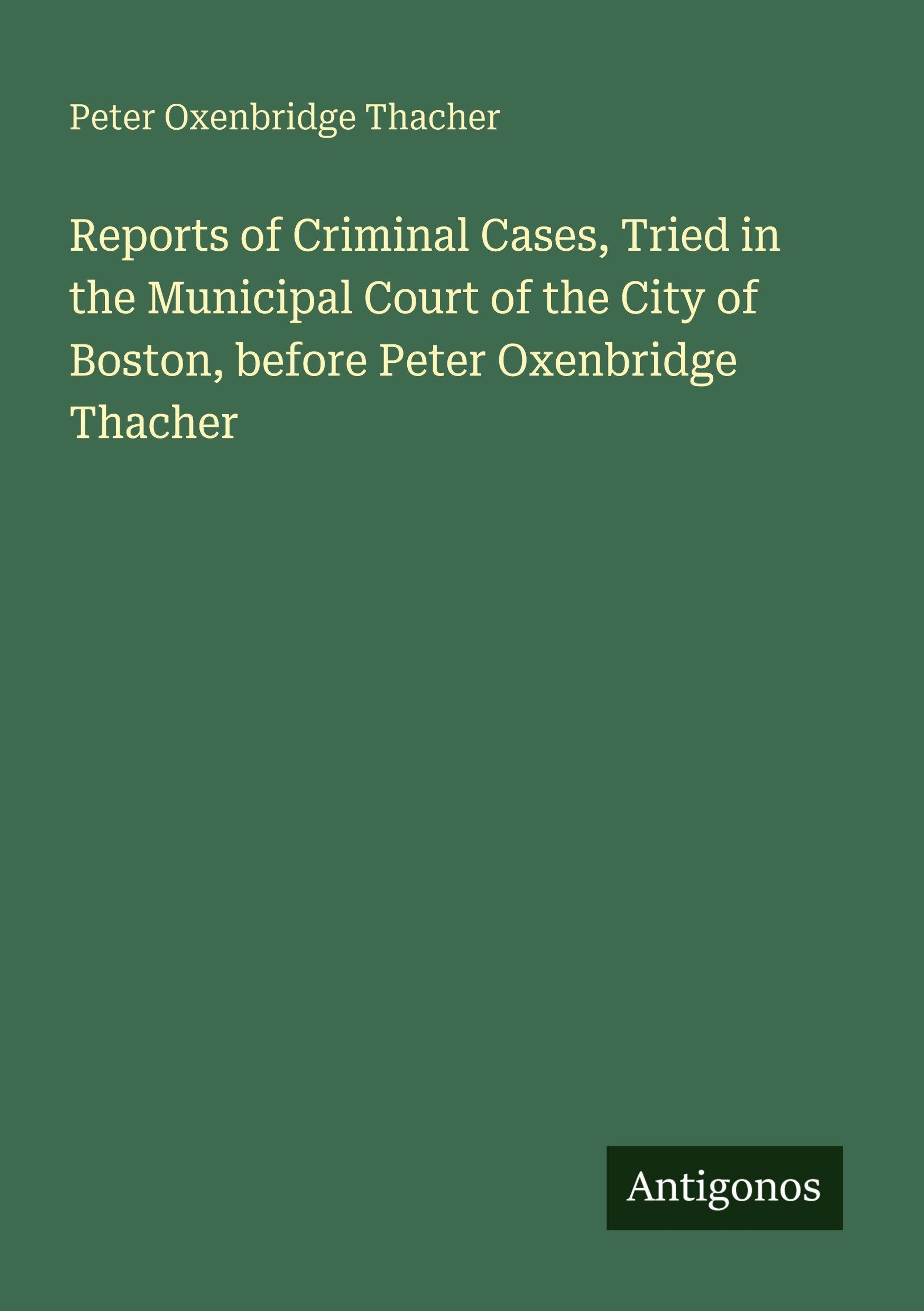Reports of Criminal Cases, Tried in the Municipal Court of the City of Boston, before Peter Oxenbridge Thacher