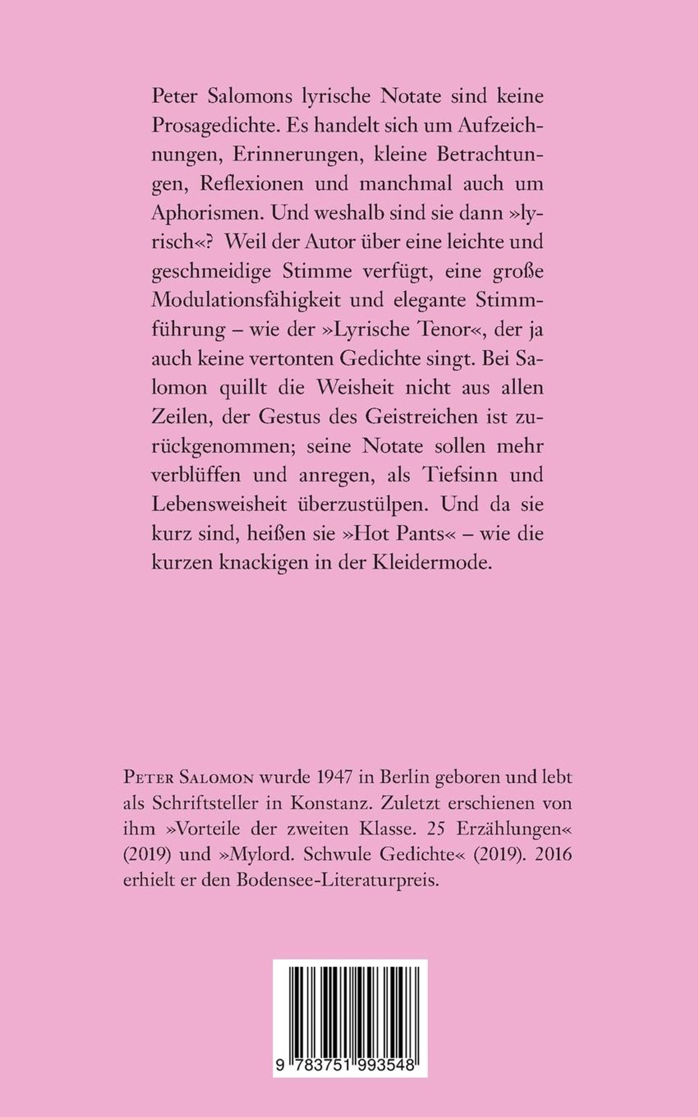 Peter Salomons lyrische Notate sind in der Literatur das, was Hot Pants in der Kleidermode sind.