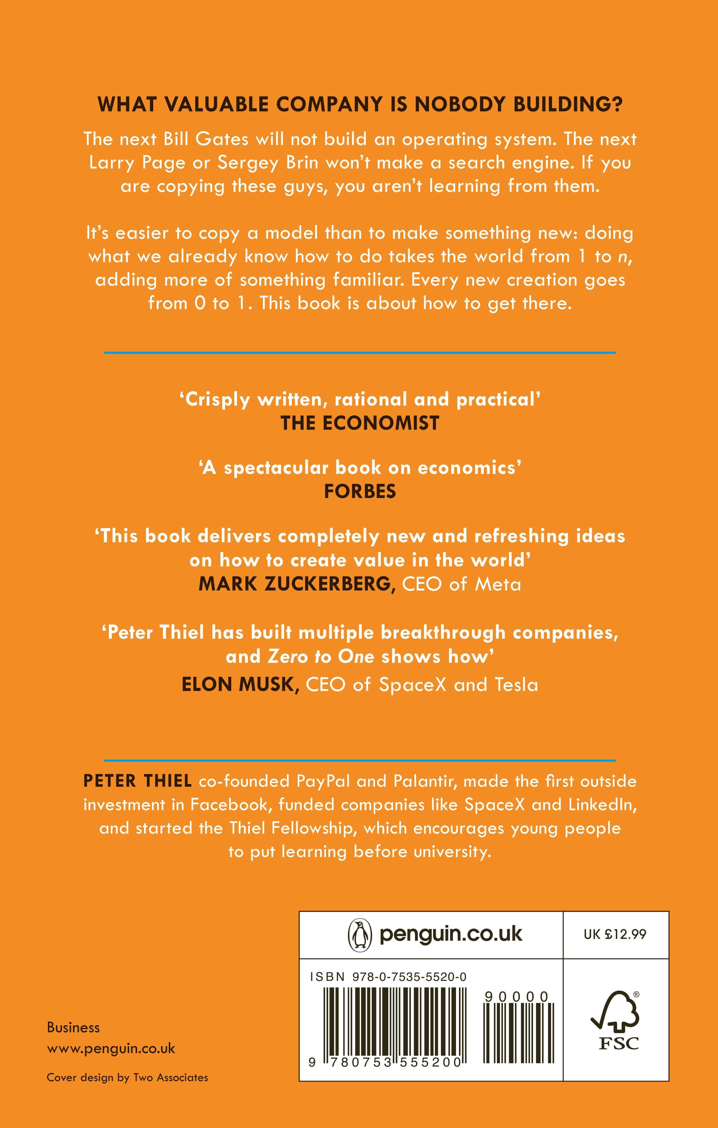 The next Bill Gates will not build an operating system. The next Larry Page will not make a search engine. If you are copying these guys, you aren't learning from them. You aren't taking the world from 0 to 1. The co-founder of one of the most successful tech start-ups in history presents a ground-breaking and thought-provoking book on innovation and what it takes for a new company to prosper.