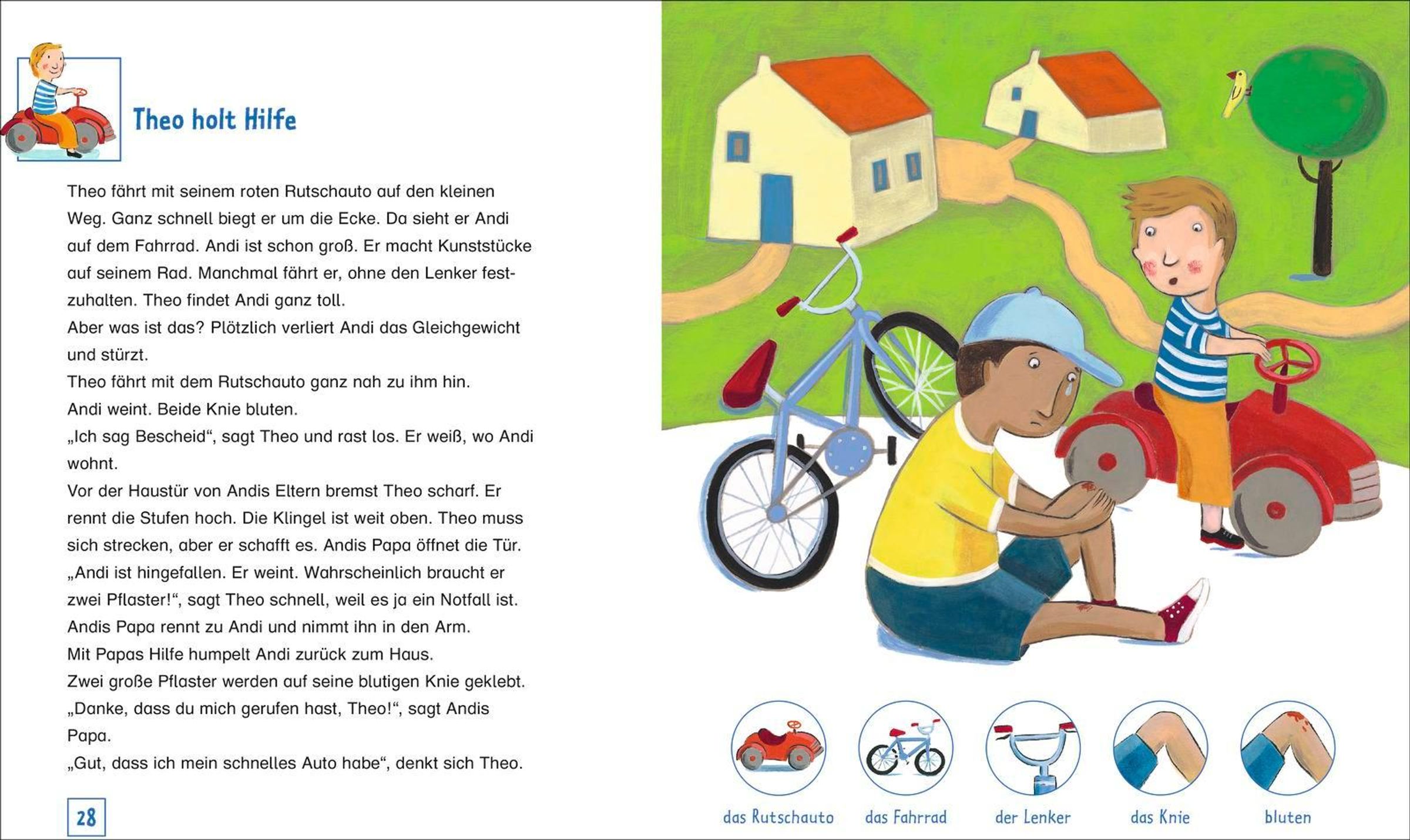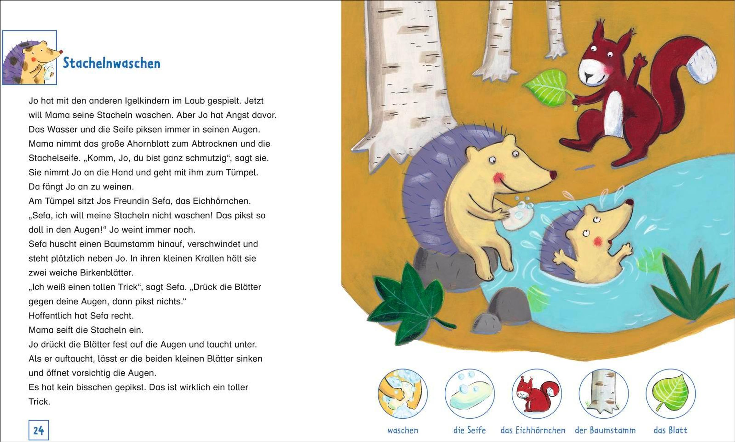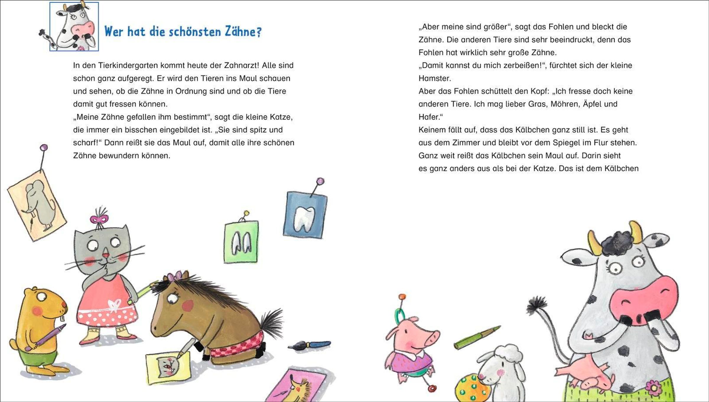 Neben den kurzen und etwas längeren Geschichten regen auch Suchbilder und Reime zum genauen Zuhören und eigenständigen Erzählen an.