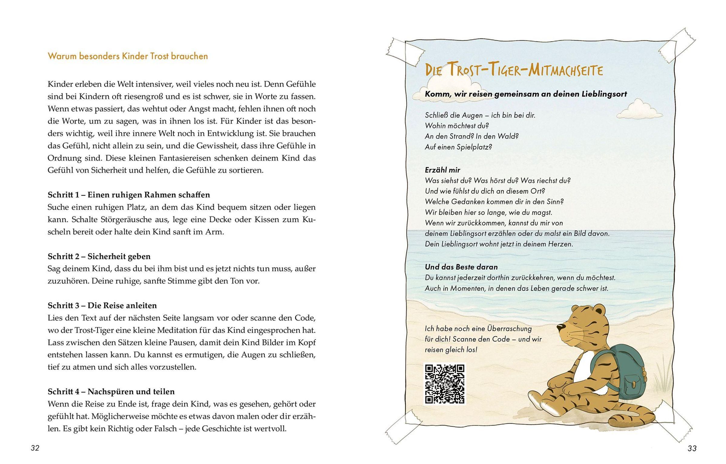 Immer mit dabei: Petras Trost-Tiger. Er ist ein liebevoller Begleiter, der Kinder spielerisch und achtsam durch viele Übungen führt.
