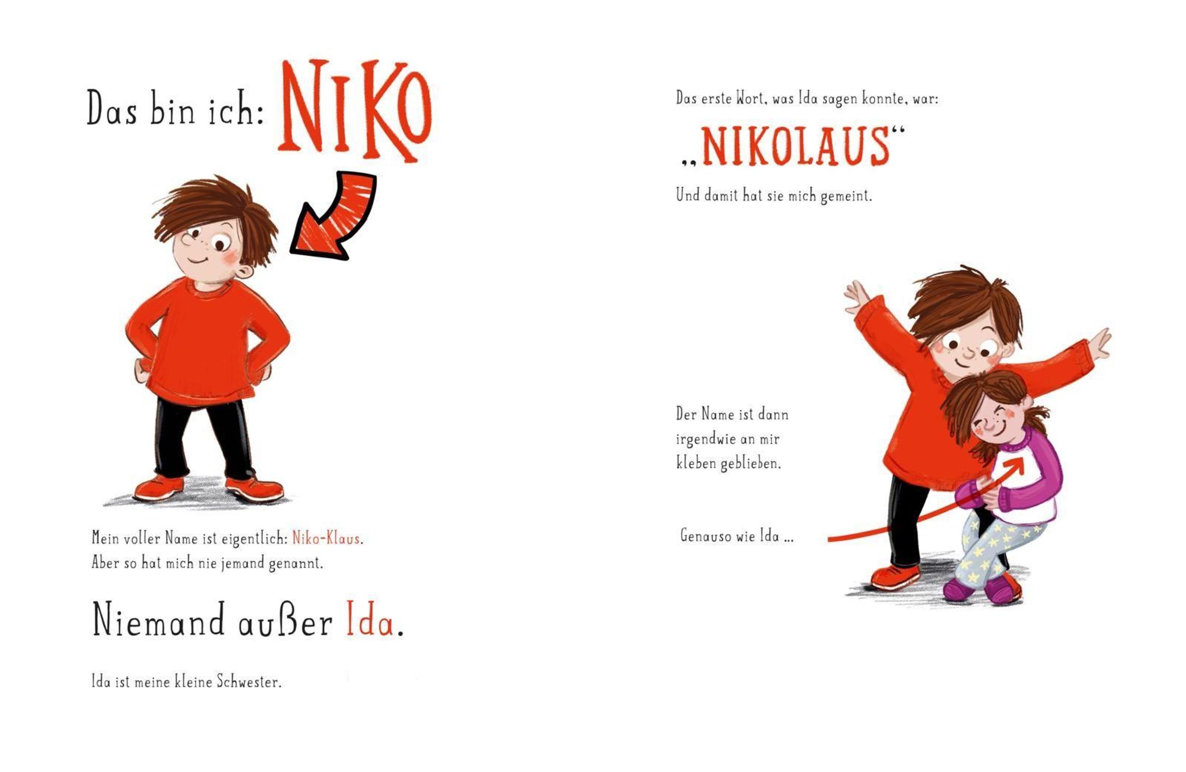 Text: "Der echte Niko(l)laus" von Petra Eimer. Illustration: Kind in rotem Mantel mit Geschenk und Zweig. Rechteckiges Logo unten., Buch