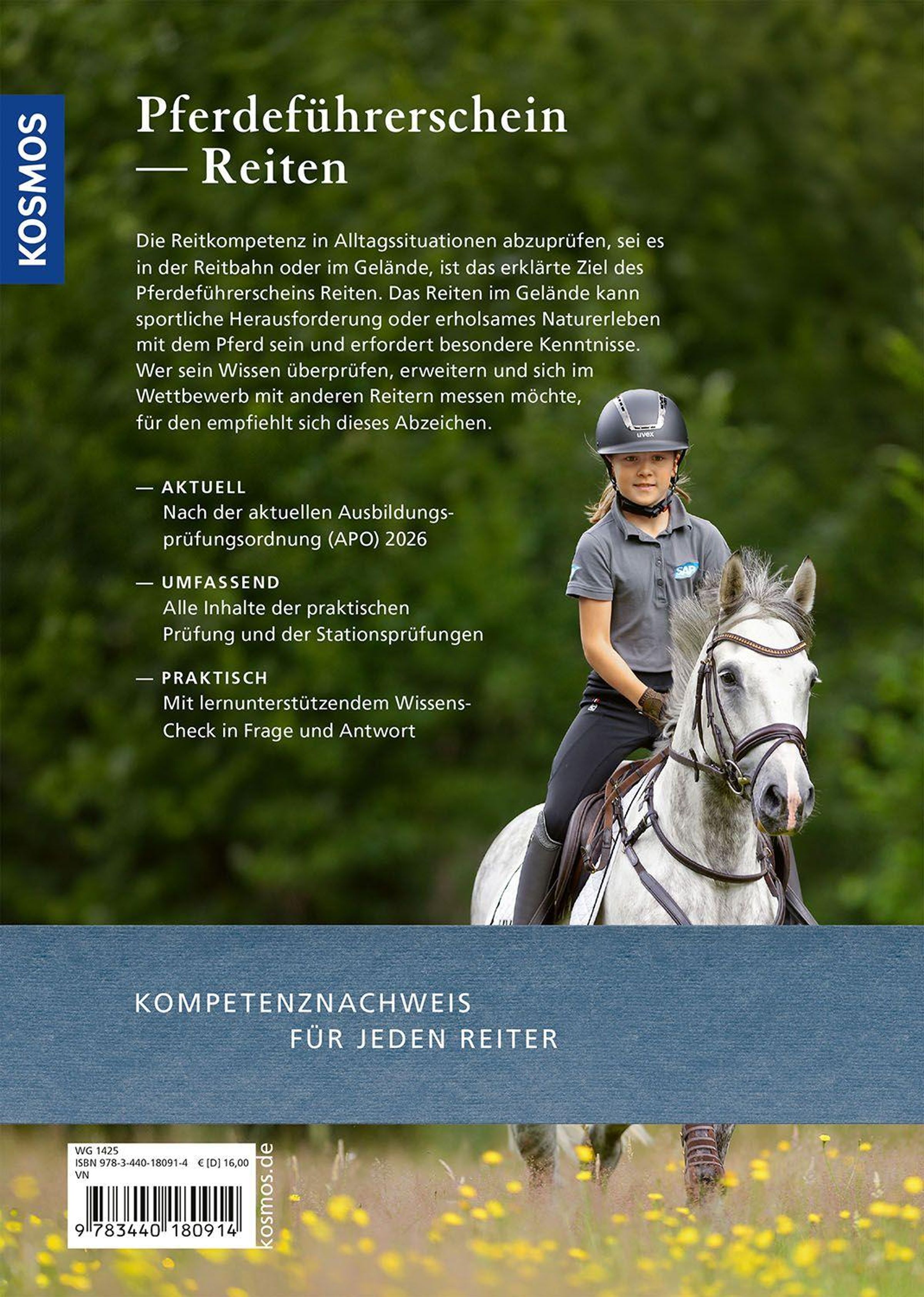 Pferdesportlerinnen und -sportler, die die FN-Prüfung zum Thema Geländereiten ablegen möchten, können sich mit diesem Buch perfekt vorbereiten. Alle vorgeschriebenen Themenbereiche wie die Vorbereitung des Pferdes, der richtigen Sitz im Sattel, reiten in allen Grundgangarten, Verhaltensregeln beim Ausreiten, Erste Hilfe für Pferd und Reiter werden ausführlich und praxisnah behandelt. Der bewährte Wissens-Check im Frage-und-Antwort-Verfahren zeigt, welche Fragen zu erwarten sind, und hilft, das Gelernte zu vertiefen. Der optimale Prüfungsvorbereiter für effizientes und entspanntes Lernen. Nach aktueller APO / LPO / WBO 2026.
