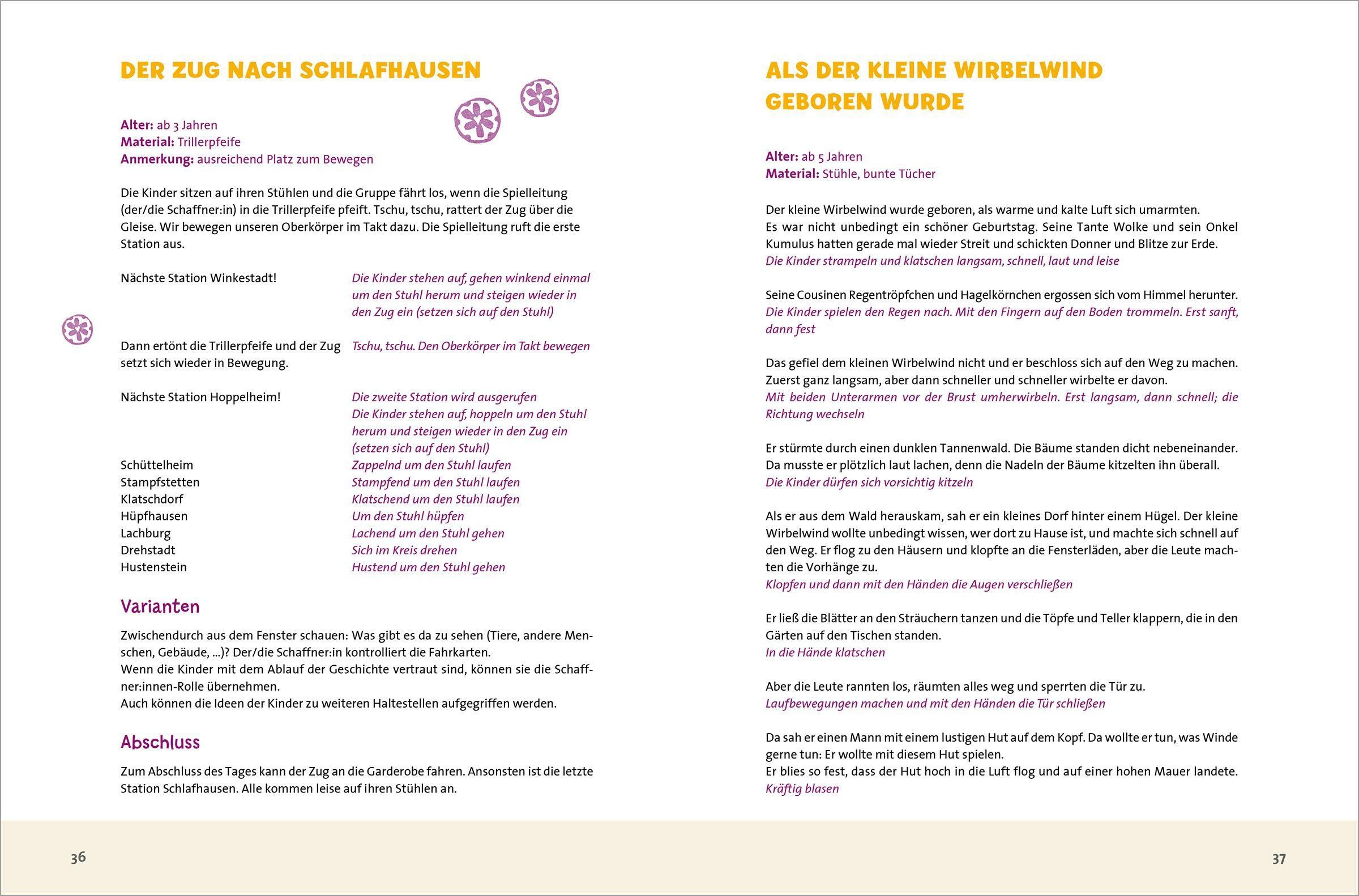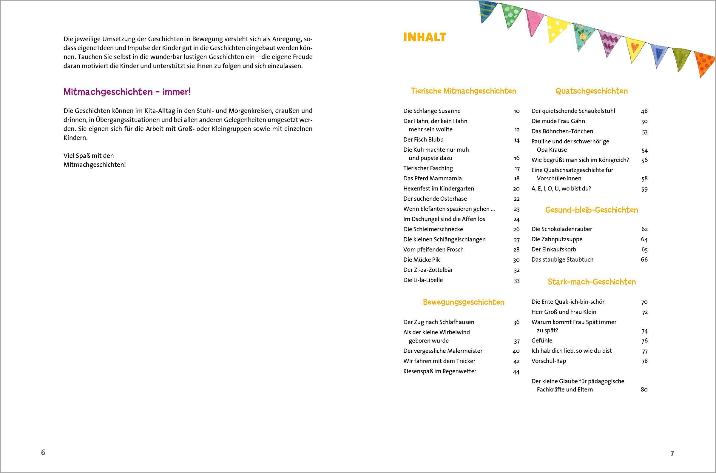 Diese Geschichten bringen Kinder in Aktion! Gemeinsam erleben sie verrückte Abenteuer mit schleimigen Schnecken, verrückten Pferden, Schokoladenräubern und anderen ungewöhnlichen Figuren. Klare, leicht umsetzbare Anleitungen unterstützen bei der Umsetzung. Die abwechslungsreichen Geschichten knüpfen an die Lebenswelten und Erfahrungen der Kinder an und fördern Sprache, Körperwahrnehmung und soziale Kompetenzen.