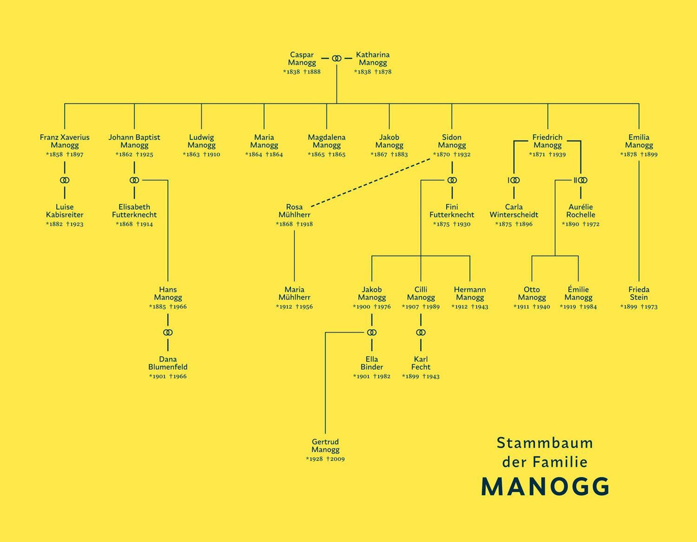 - Zahlreiche historische Schwarz-Weiß-Fotografien, Familienstammbaum