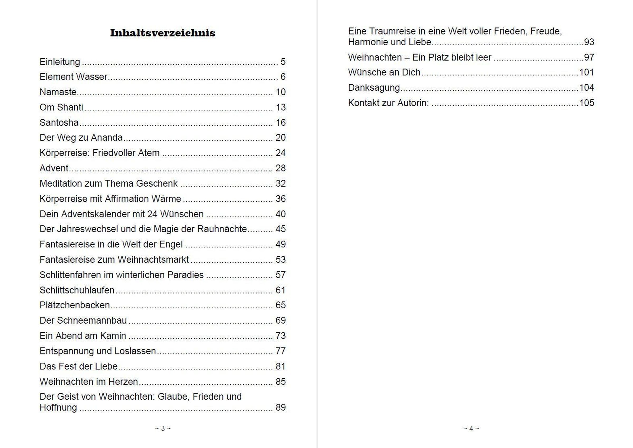 Element Wasser Namaste Om Shanti Santosha Der Weg zu Ananda Friedvoller Atem Advent Geschenk Körperreise Wärme Dein Adventskalender mit 24 Wünschen Der Jahreswechsel und die Magie der Rauhnächte Welt der Engel Weihnachtsmarkt Schlittenfahren Schlittschuhlaufen Plätzchenbacken Schneemannbau Ein Abend am Kamin Entspannung und Loslassen Das Fest der Liebe Weihnachten im Herzen Der Geist von Weihnachten Traumreise in eine Welt voller Frieden Ein Platz bleibt leer Wünsche an Dich