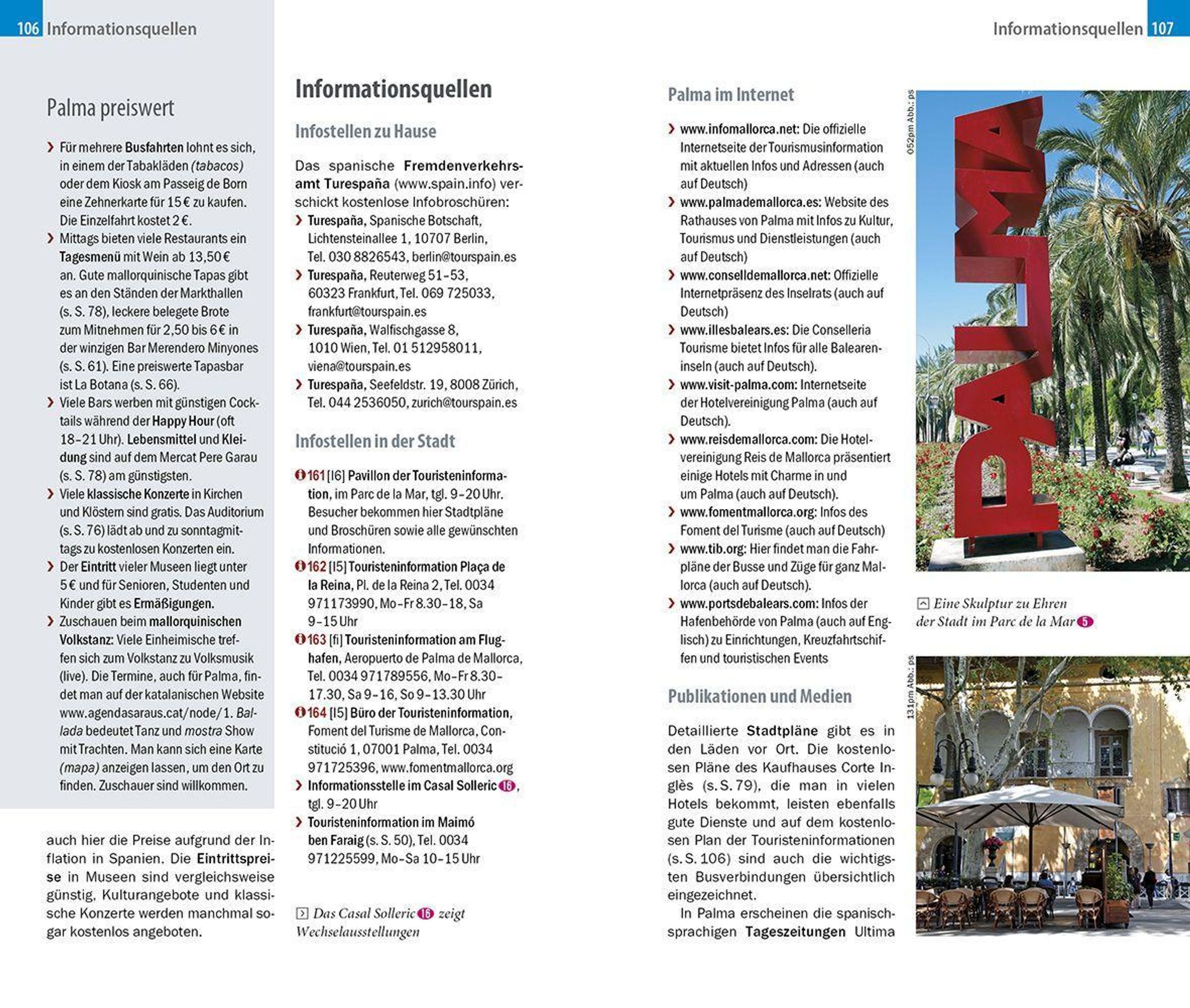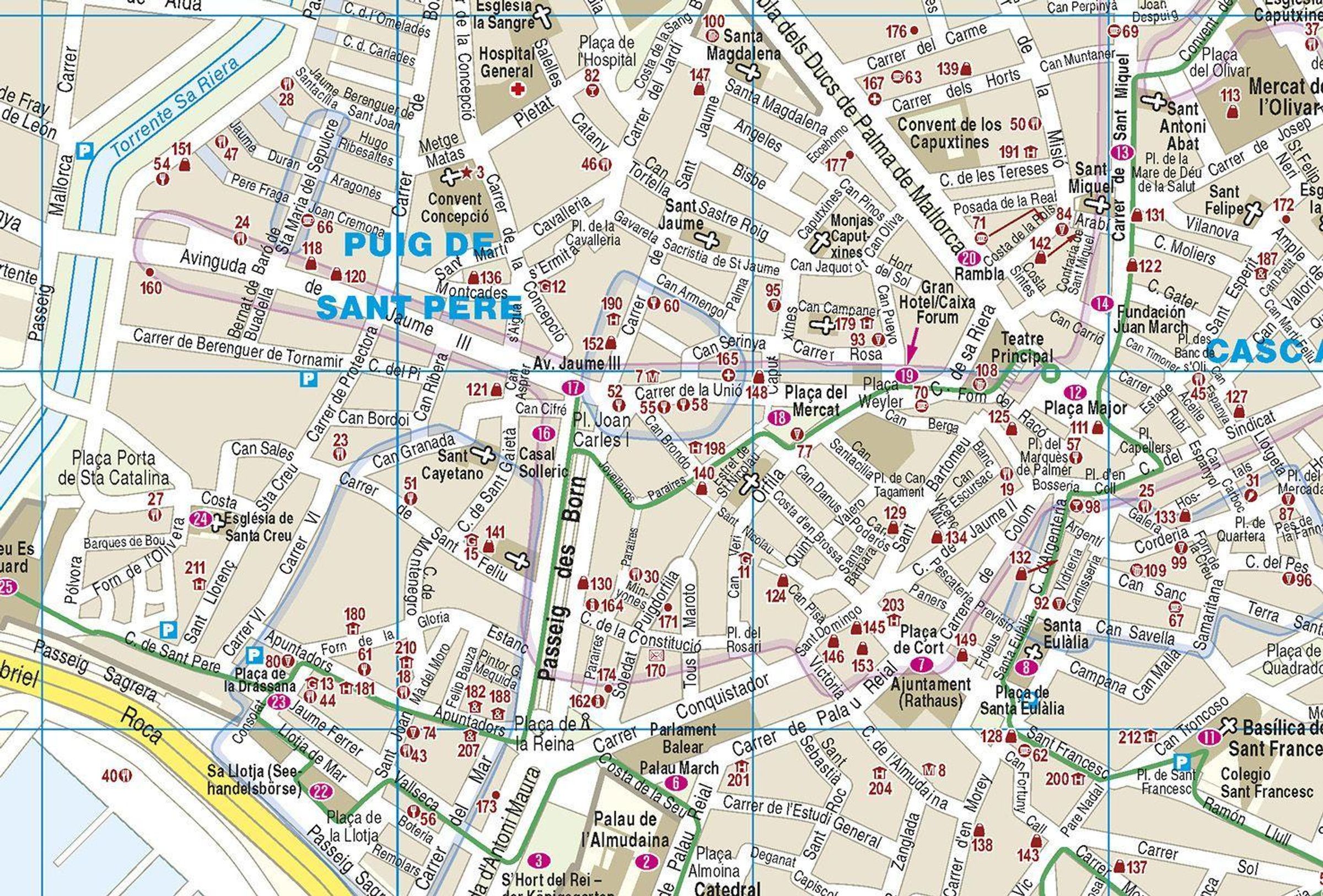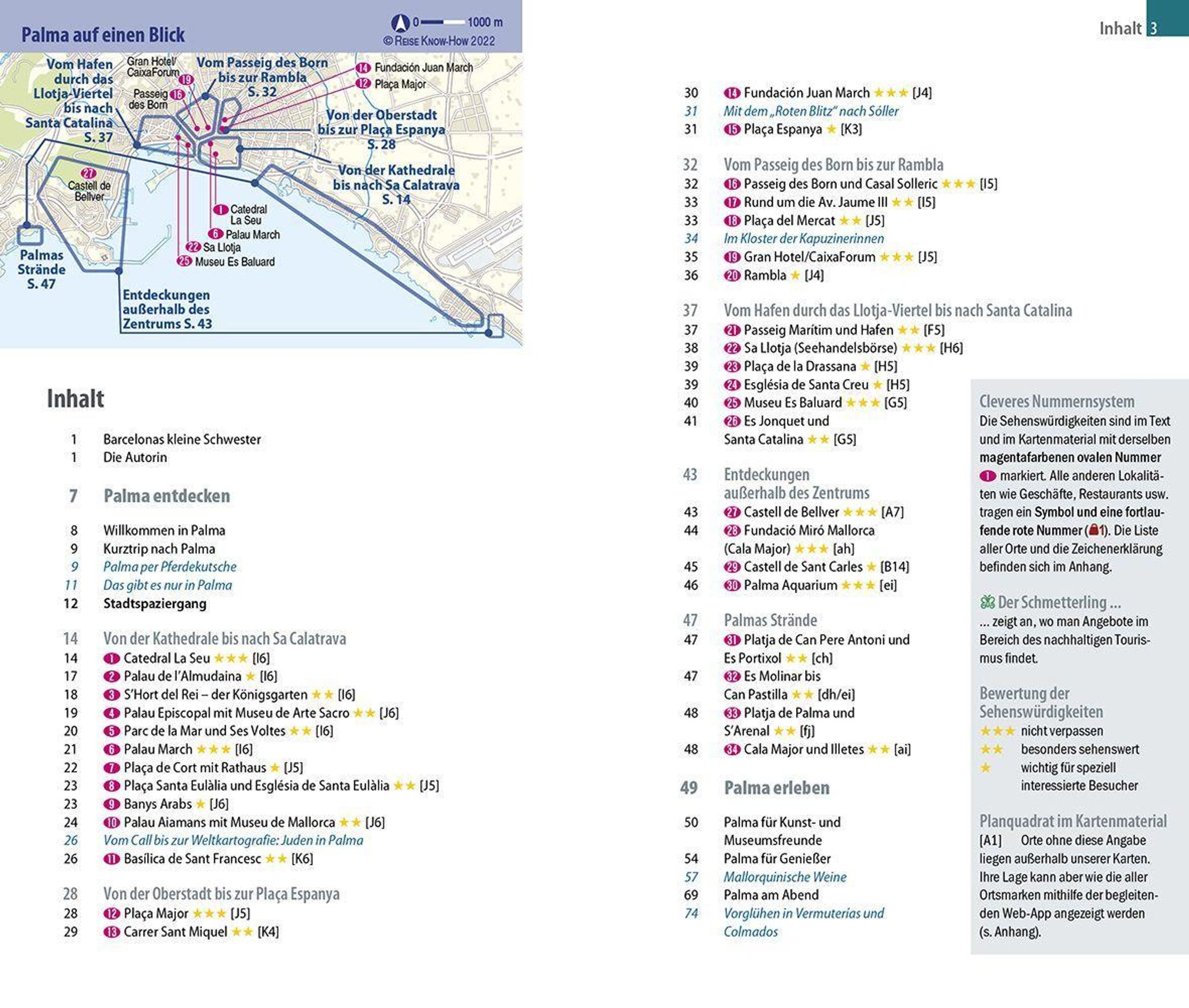 Dazu: kostenlose Web-App für Smartphone, Tablet und PC mit Stadtplan- und Satellitenansichten passend zum Text, Routenführung zu allen beschriebenen Sehenswürdigkeiten, Verlauf des Stadtspaziergangs, seitenbezogenen Updates nach Redaktionsschluss sowie einem Mini-Audiotrainer Mallorquinisch