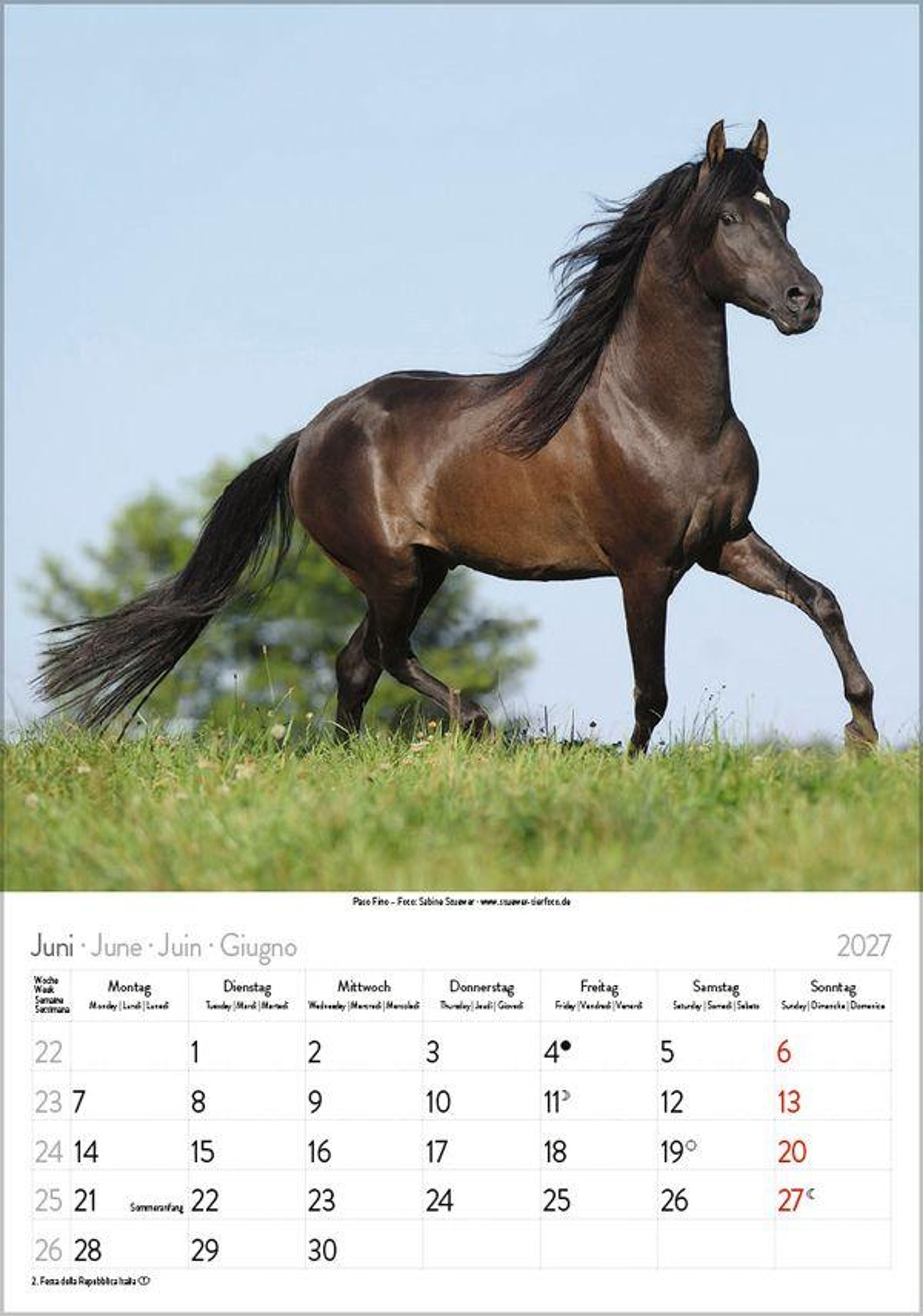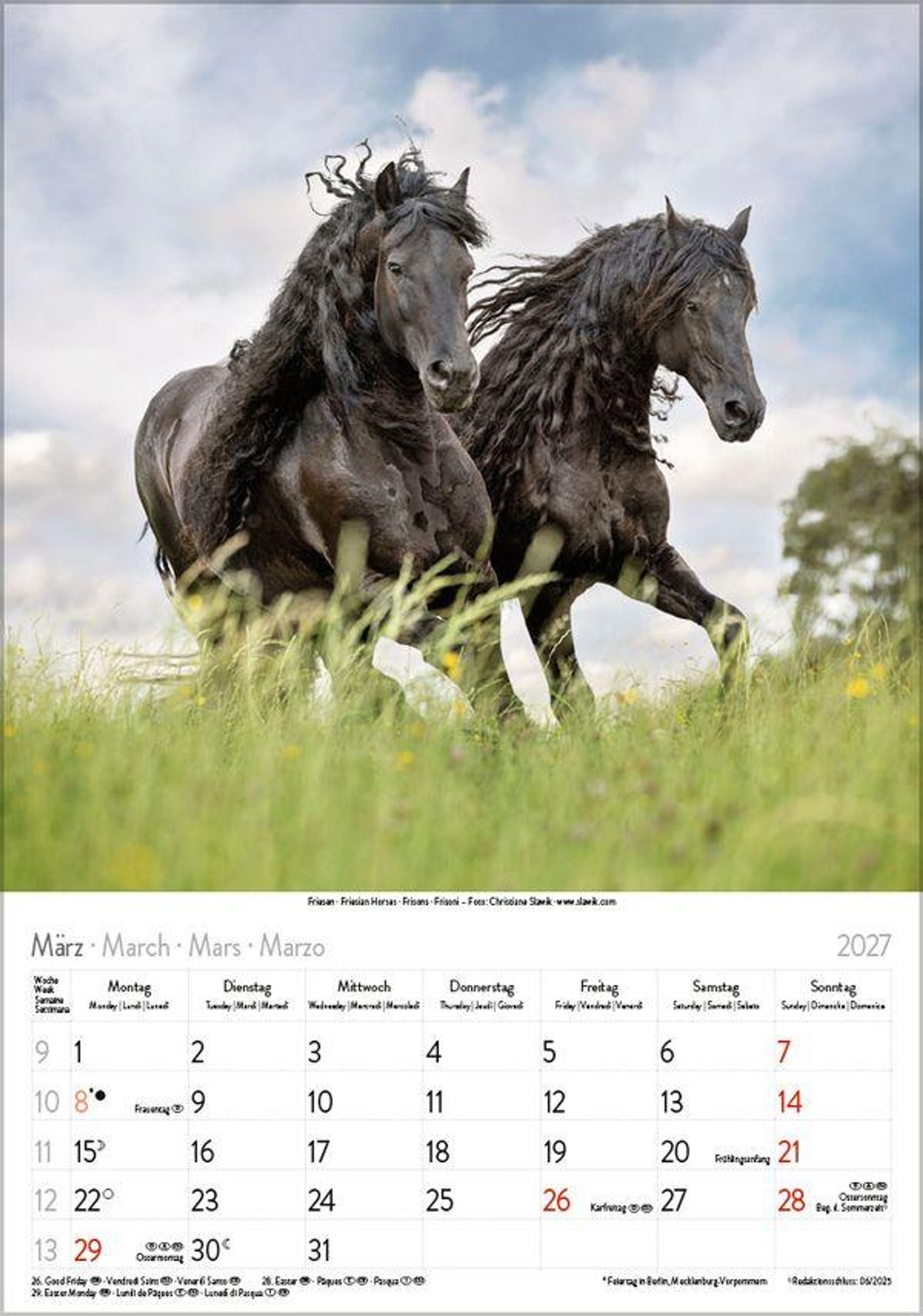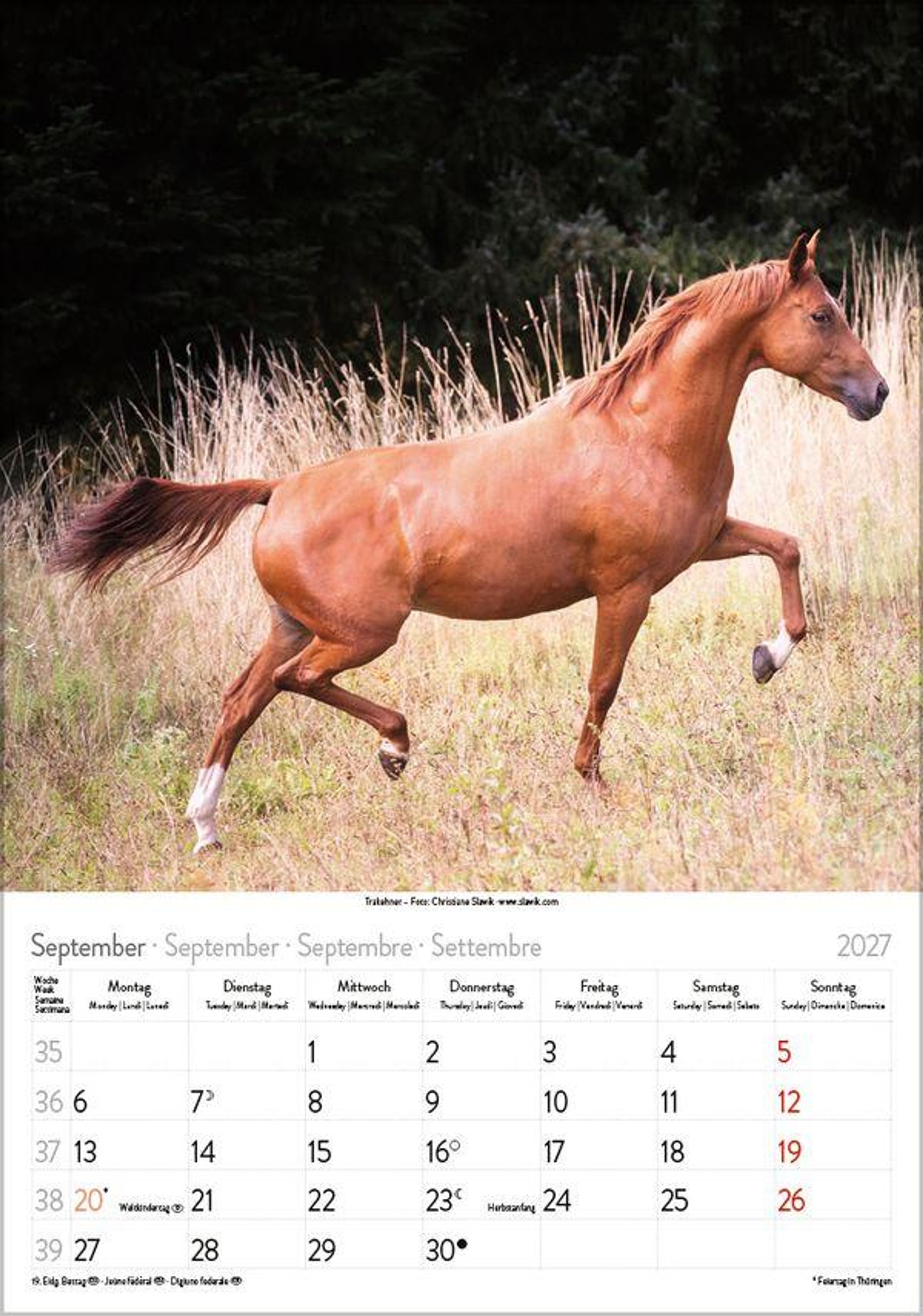- Wandkalender mit Fotos von Pferden. Format 23,5 x 33,5 cm.