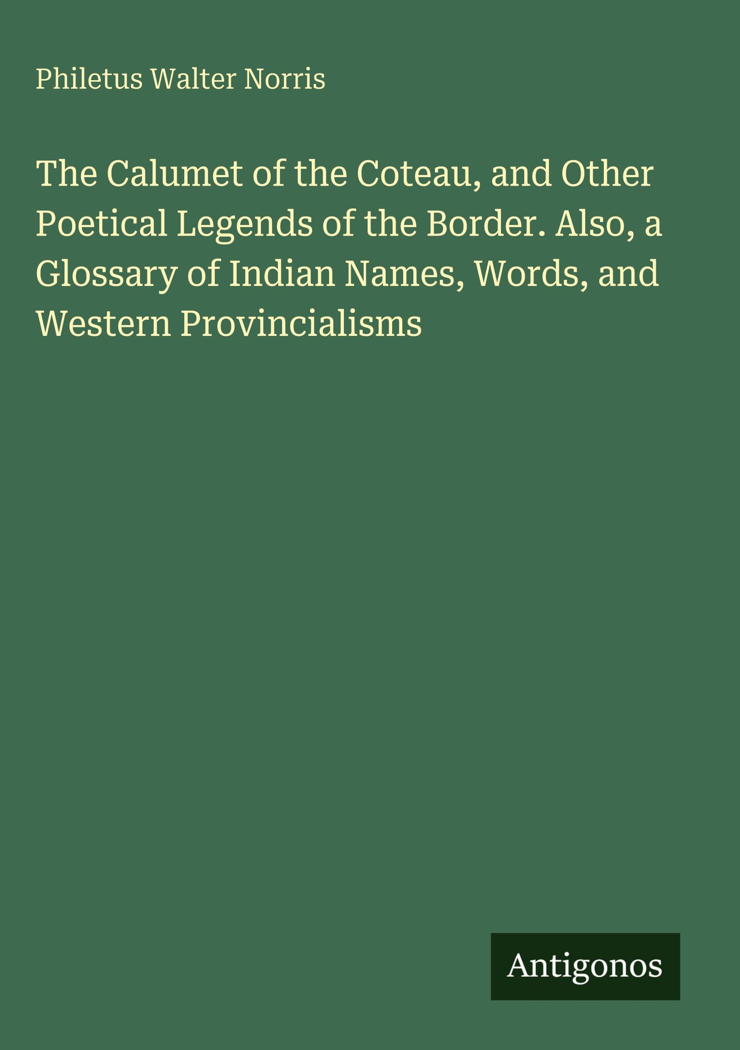 Philetus Walter Norris: The Calumet of the Coteau, and Other Poetical Legends of the Border. Also, a Glossary of..., Gebunden