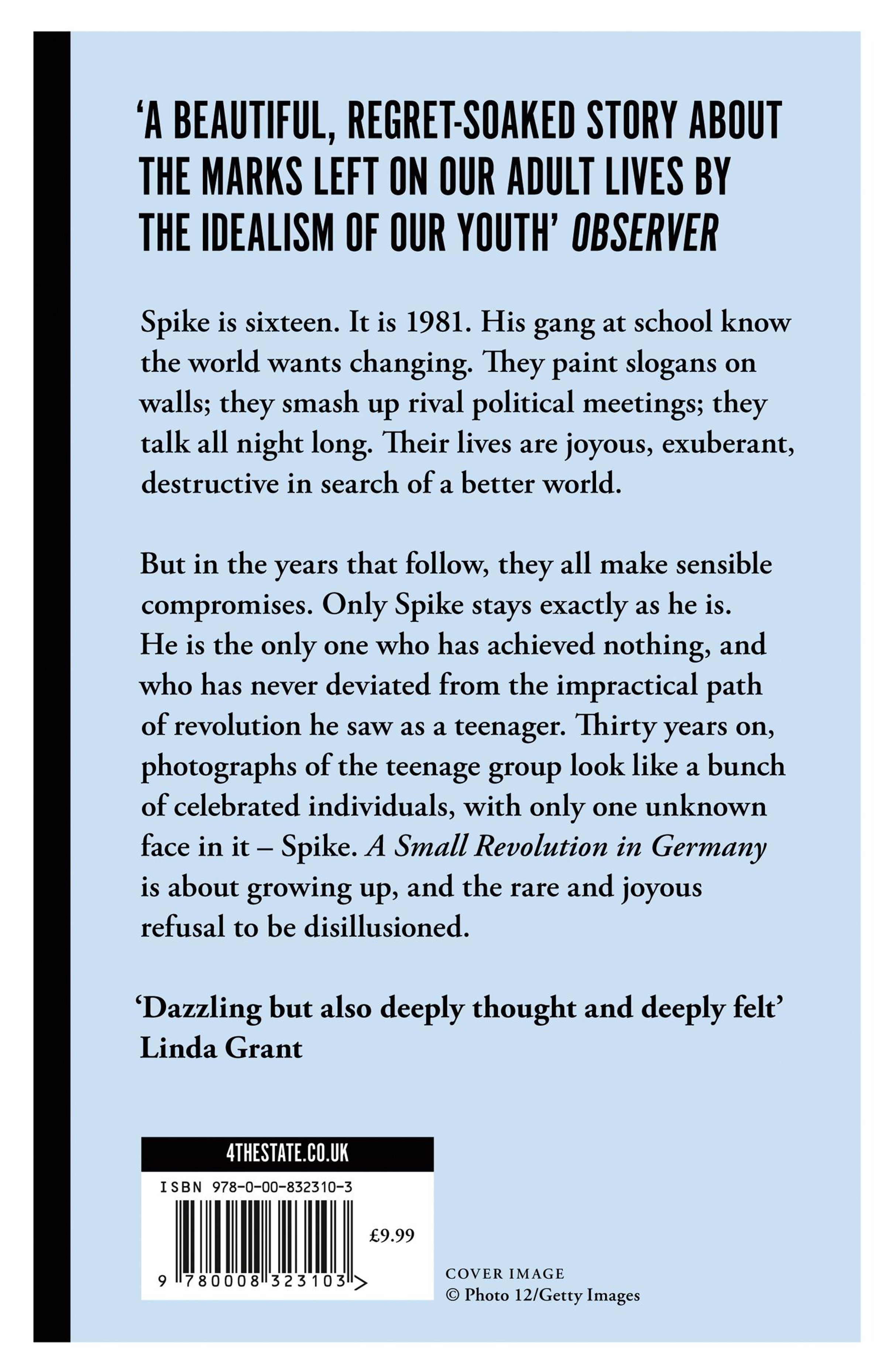 Everyone remembers what it's like to be seventeen. The conversations you have; the ideas that burst on you; the kiss that transforms you. And then you grow up, and make a deal with adulthood. A Small Revolution in Germanyis about that rapturous moment when ideas, and ideals, and passion crash over one boy's head. And what happens in the decades afterwards? When you see the overwhelming truth when you are seventeen, why should you ever abandon that truth?