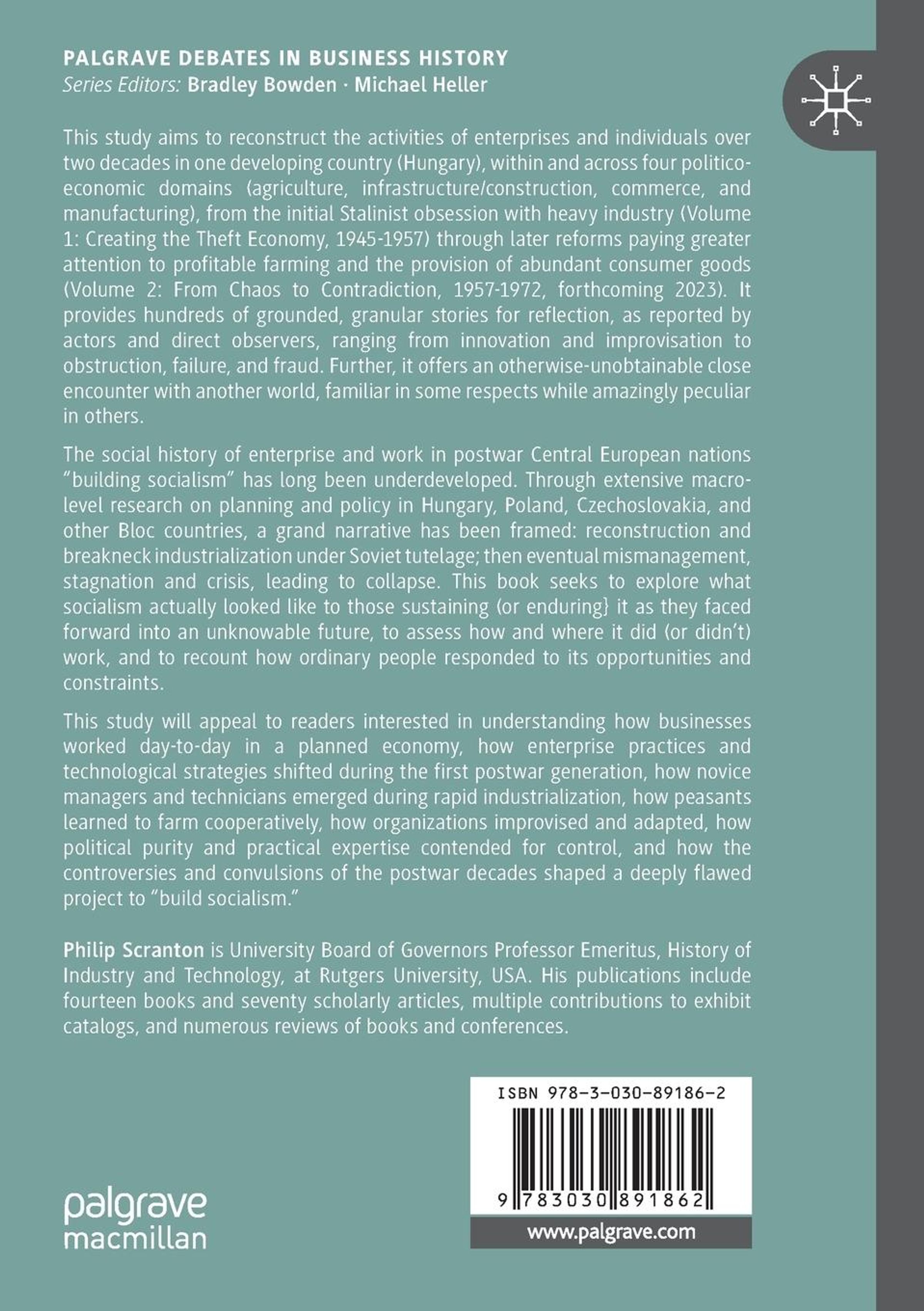 This study aims to reconstruct the activities of enterprises and individuals over two decades in one developing country (Hungary), within and across four politico-economic domains (agriculture, infrastructure / construction, commerce, and manufacturing), from the initial Stalinist obsession with heavy industry (Volume 1: Creating the Theft Economy, 1945-1957) through later reforms paying greater attention to profitable farming and the provision of abundant consumer goods (Volume 2: From Chaos to Contradiction, 1957-1972, forthcoming 2023). It provides hundreds of grounded, granular stories for reflection, as reported by actors and direct observers, ranging from innovation and improvisation to obstruction, failure, and fraud. Further, it offers an otherwise-unobtainable close encounter with another world, familiar in some respects while amazingly peculiar in others.