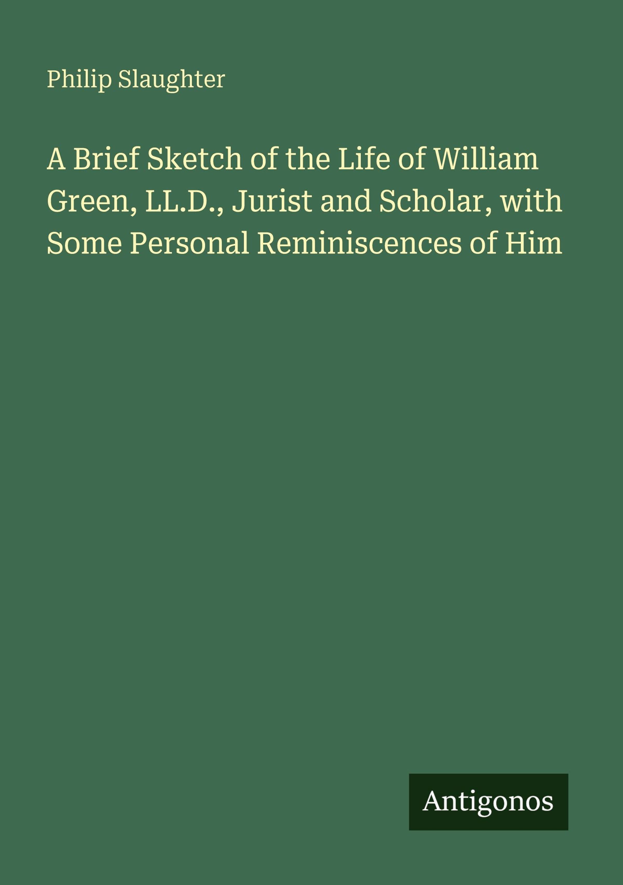 A Brief Sketch of the Life of William Green, LL.D., Jurist and Scholar, with Some Personal Reminiscences of Him