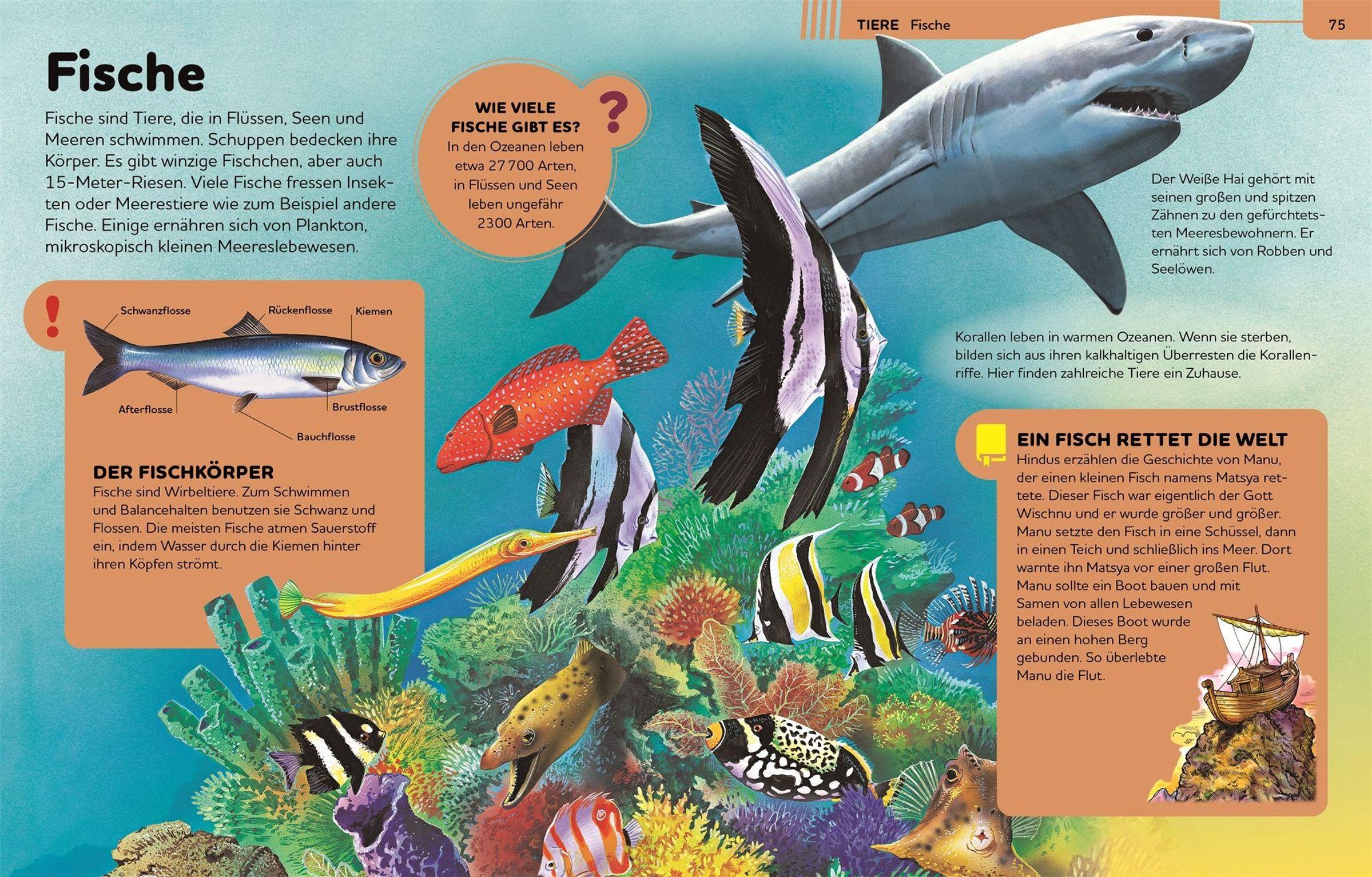 In diesem großen Schülerlexikon finden Kinder ab 6 Jahren kompetent aufbereitetes Grundschulwissen zu allen wichtigen Kinderthemen . Ob Erde , Pflanzen , Tiere , Geschichte , Körper , Naturwissenschaften oder Technik : In 10 Kapiteln werden spannende Fakten und Zusammenhänge in kurzen und altersgerechten Texten erklärt. Kleine Geschichten, Experimente, Quizfragen und Spielideen sowie zahlreiche Wissensboxen sorgen für zusätzlichen Spaß. Die über 2.000 farbigen Illustrationen machen das Durchblättern zu einem einmaligen visuellen Erlebnis. Das Kinderlexikon Grundschule ist ein großartiges Geschenk zum Schulanfang , mit dem Kinder ab 6 Jahren ihren unbändigen Wissensdurst stillen können!
