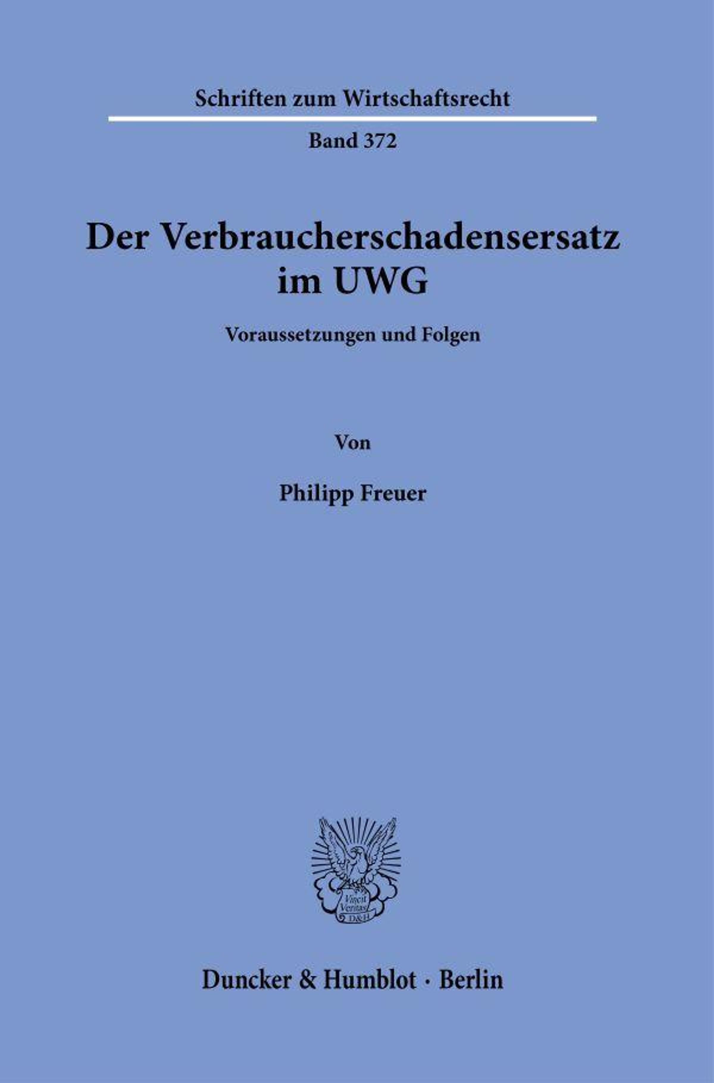 'Consumer Damage in the Unfair Competition Act. Requirements and Consequences': This paper examines the prerequisites for individual consumers' claims for damages, which have existed since May 28, 2022, under Section 9 (2) Sentence 1 of the Unfair Competition Act (UWG), as well as the legal consequences that may arise if these prerequisites are met. It also examines whether the introduction of this section has improved consumer protection within and outside the existing protection system.