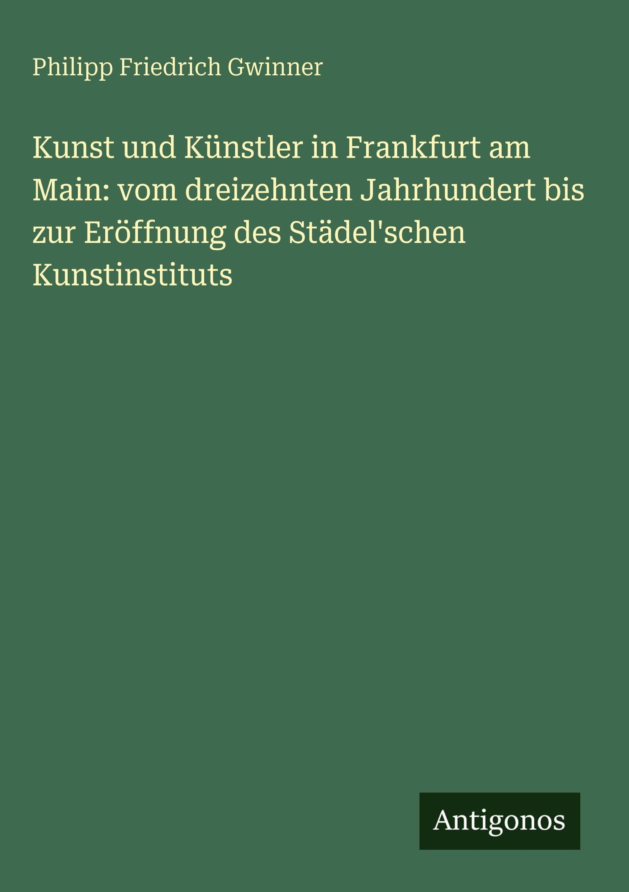 Kunst und Künstler in Frankfurt am Main: vom dreizehnten Jahrhundert bis zur Eröffnung des Städel'schen Kunstinstituts