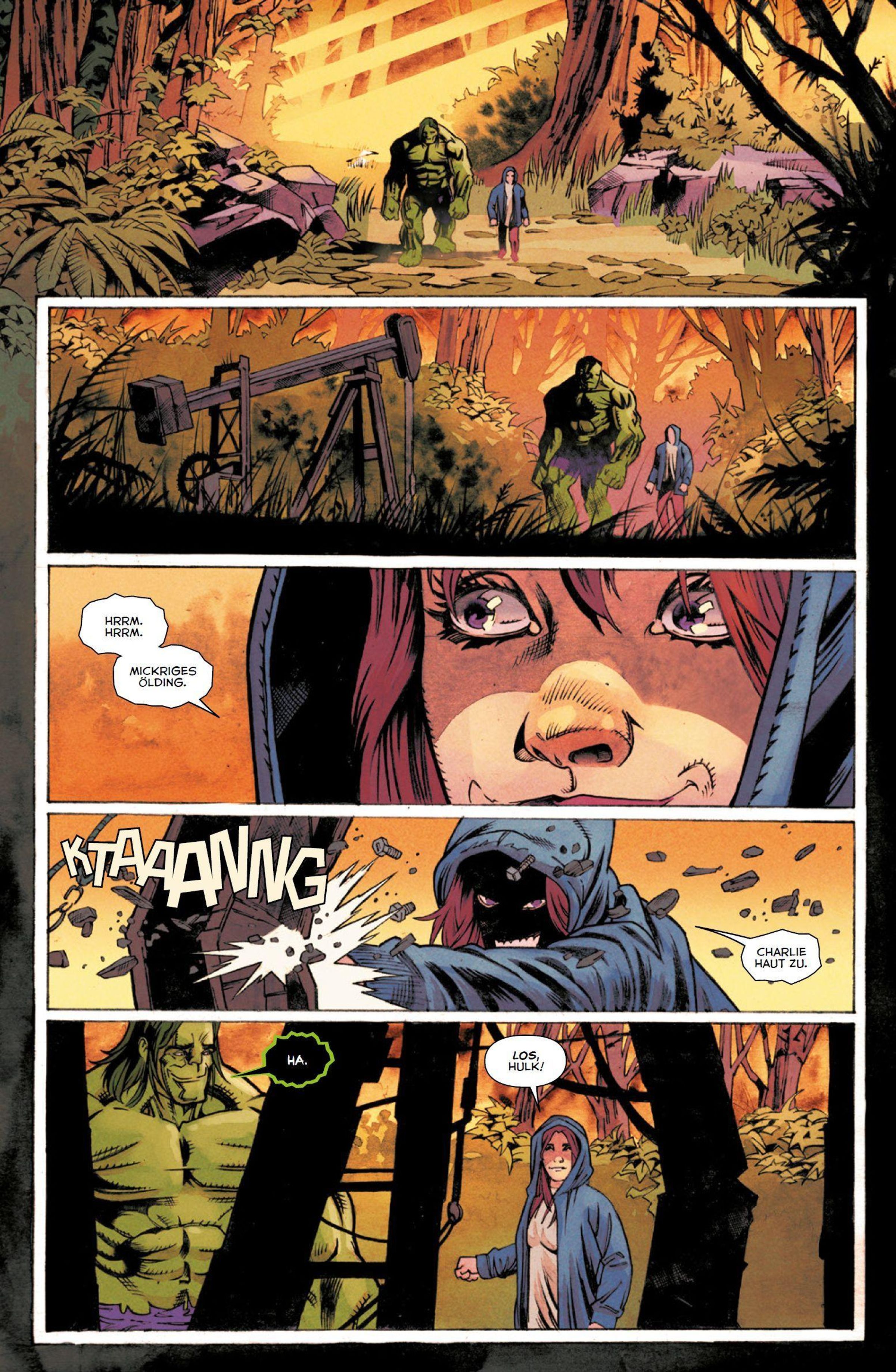 IN DER HAUT DES MONSTERS Hulk und seine junge Freundin Charlie sind wieder unterwegs. Doch ihre neue Wolfsnatur lockt nicht nur Werewolf by Night an, sondern auch den uralten Monsterwolf Vârcolac. Um Charlies finstere Instinkte zu kontrollieren, wenden sie und Bruce sich zudem an Meisterzauberin Clea Strange. Das ruft wiederum Thor auf den Plan, und so kommt es zum überfälligen Rückkampf zwischen Gamma-Gigant und Donnergott.