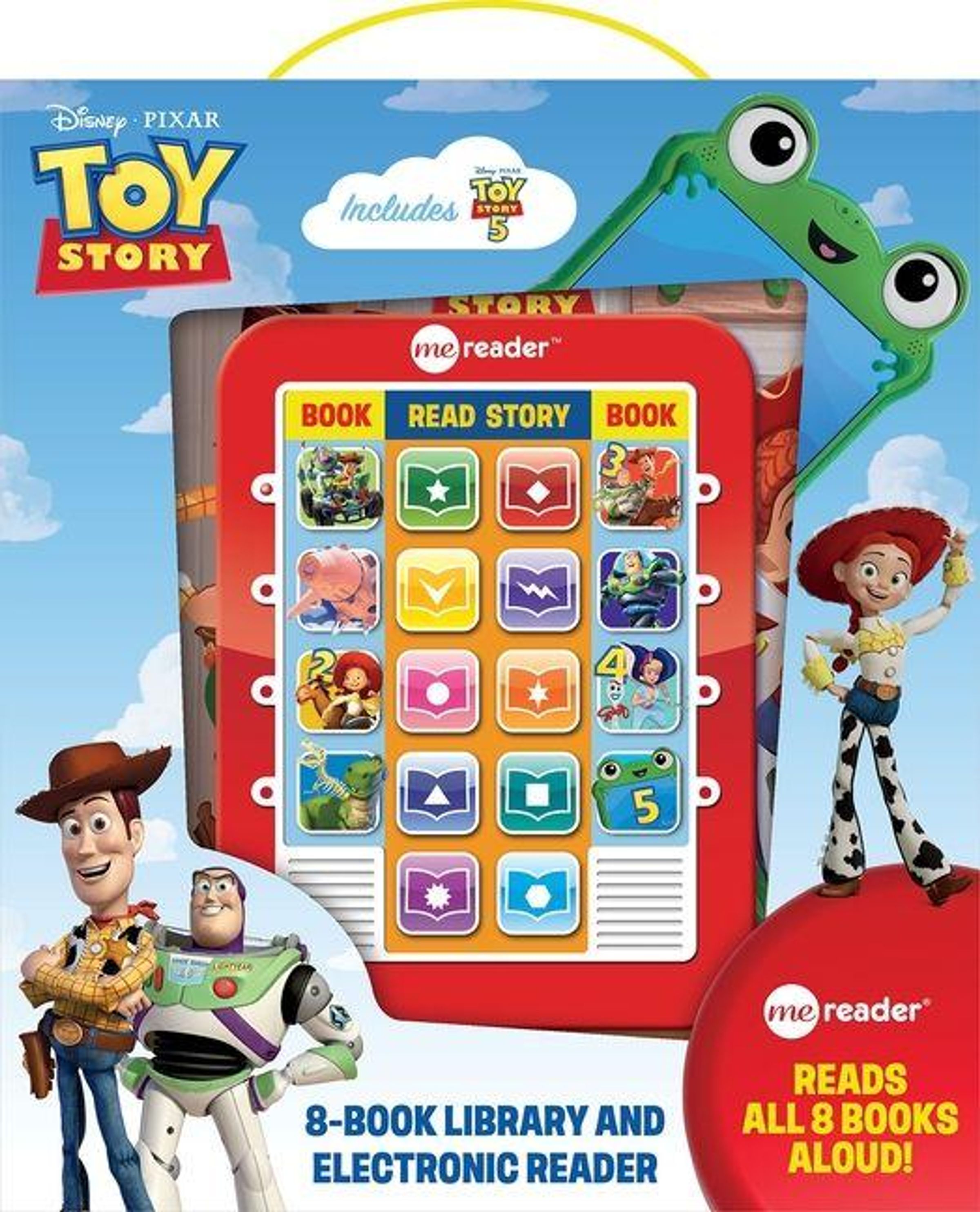 Join Woody, Buzz, Jessie, and more Toy Story friends on a reading adventure! 8 illustrated books come packaged with a sleek Me Reader module that reads each book aloud. Choose a book, press the matching book and page buttons on the module, and hear the action-packed retellings of all five Toy Story movies, including Toy Story 5! Follow along in the book for an independent reading experience that builds confidence in beginning readers. Story sounds and expressive narration enhance reading comprehension.