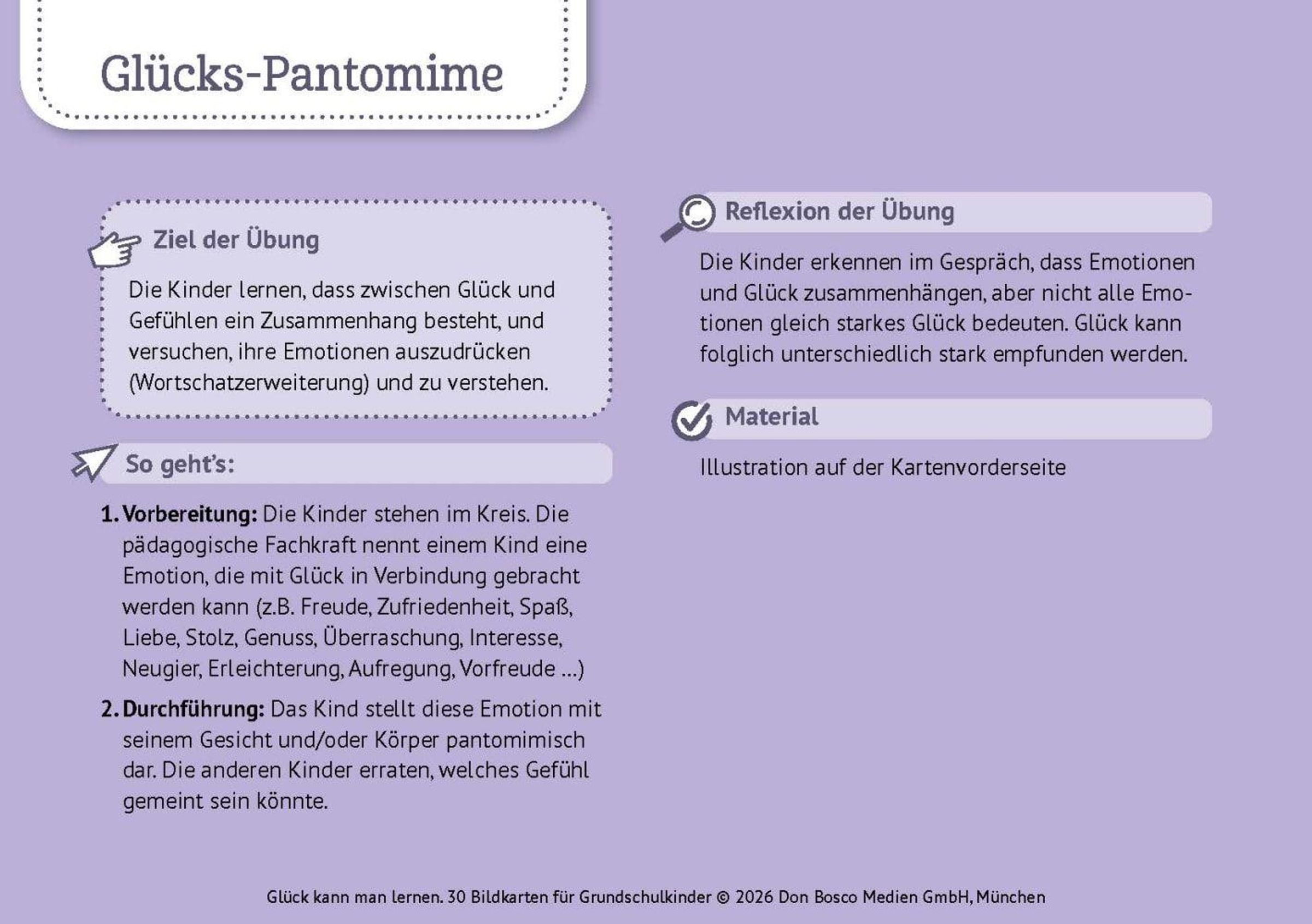 - Geeignet für den Einsatz in Grundschule, Hort und Förderschule, Kombination mit dem Glücks-Heft möglich