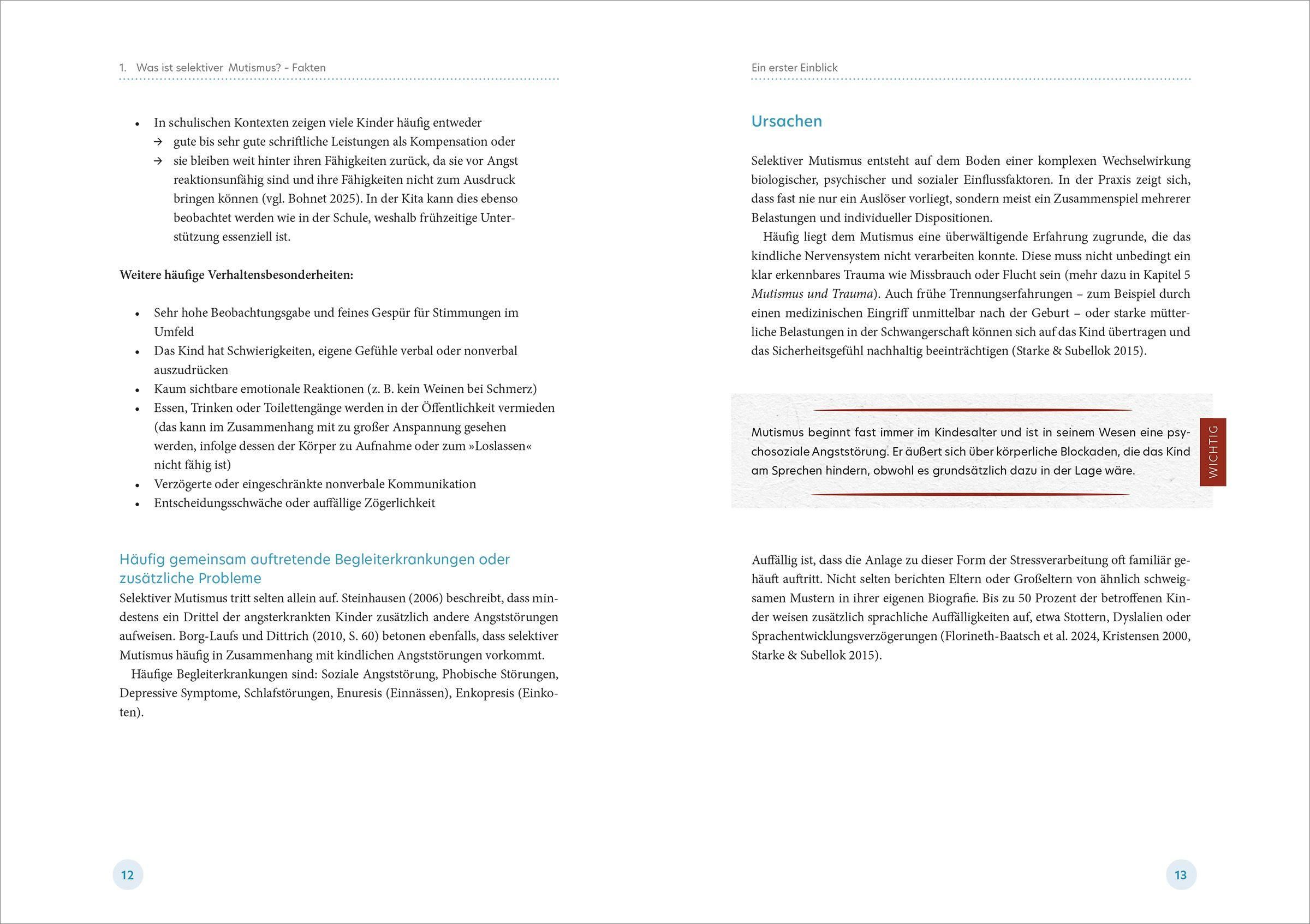 diesem Buch einen ganzheitlichen Blick auf selektiven Mutismus und verbindet Fachwissen für die Kita mit berührenden Einblicken in den Therapiealltag betroffener Kinder. Mit vielen praxisnahen Tipps sowie fundiertem Hintergrundwissen für pädagogische Fachkräfte gelingt ein Perspektivwechsel, der Sicherheit schafft - für die Kinder und für das pädagogische Handeln im Kita-Alltag.