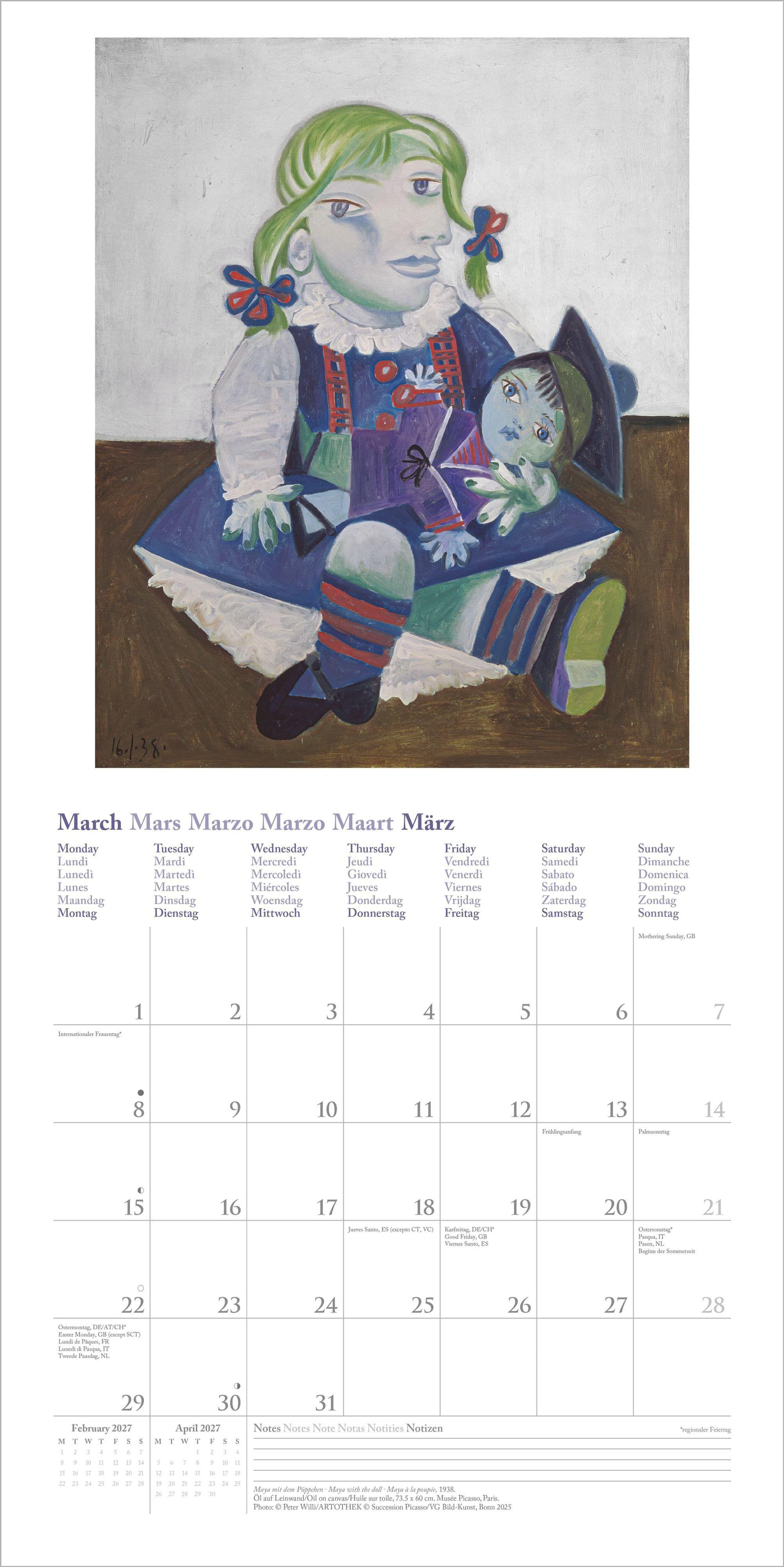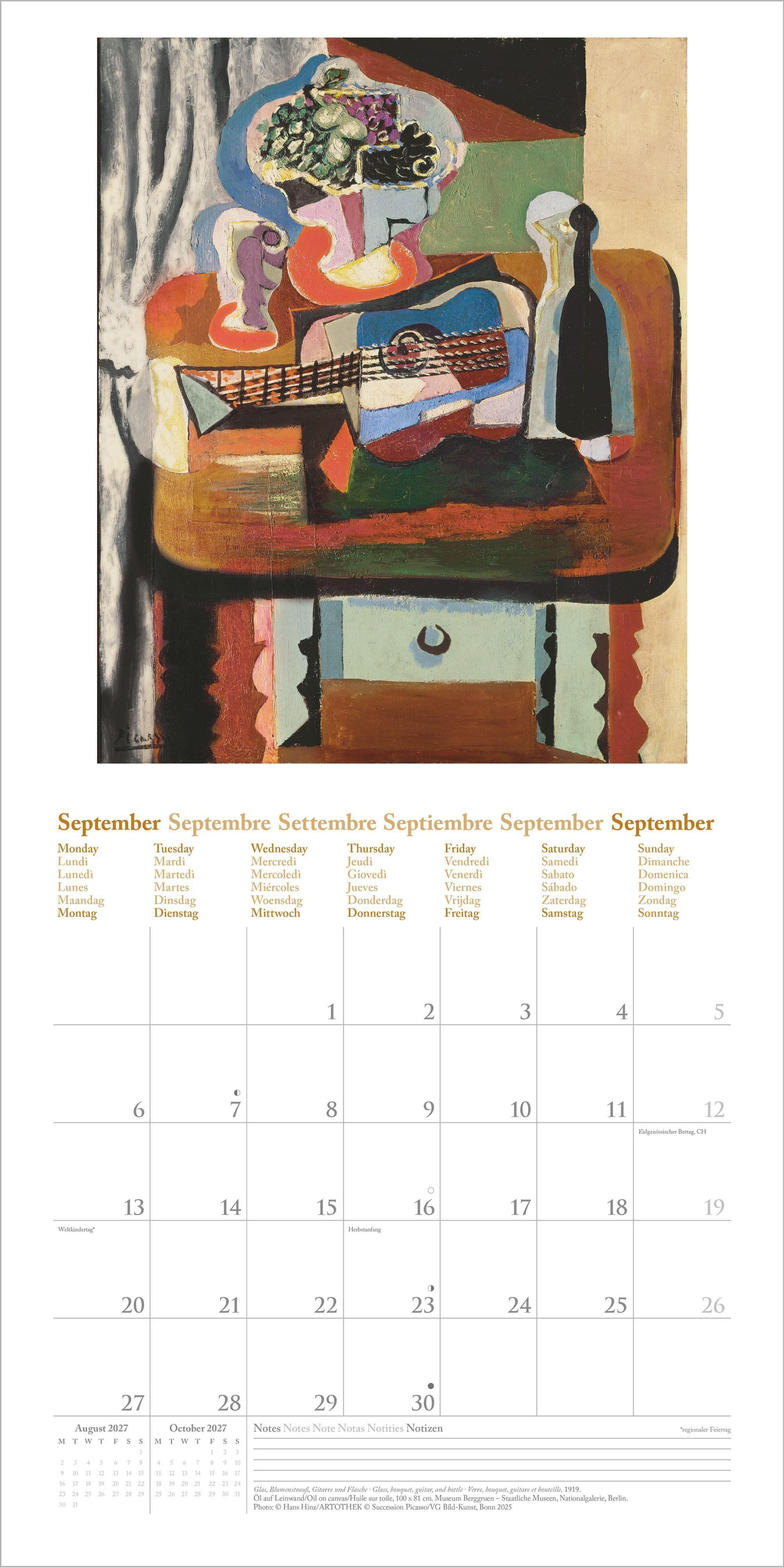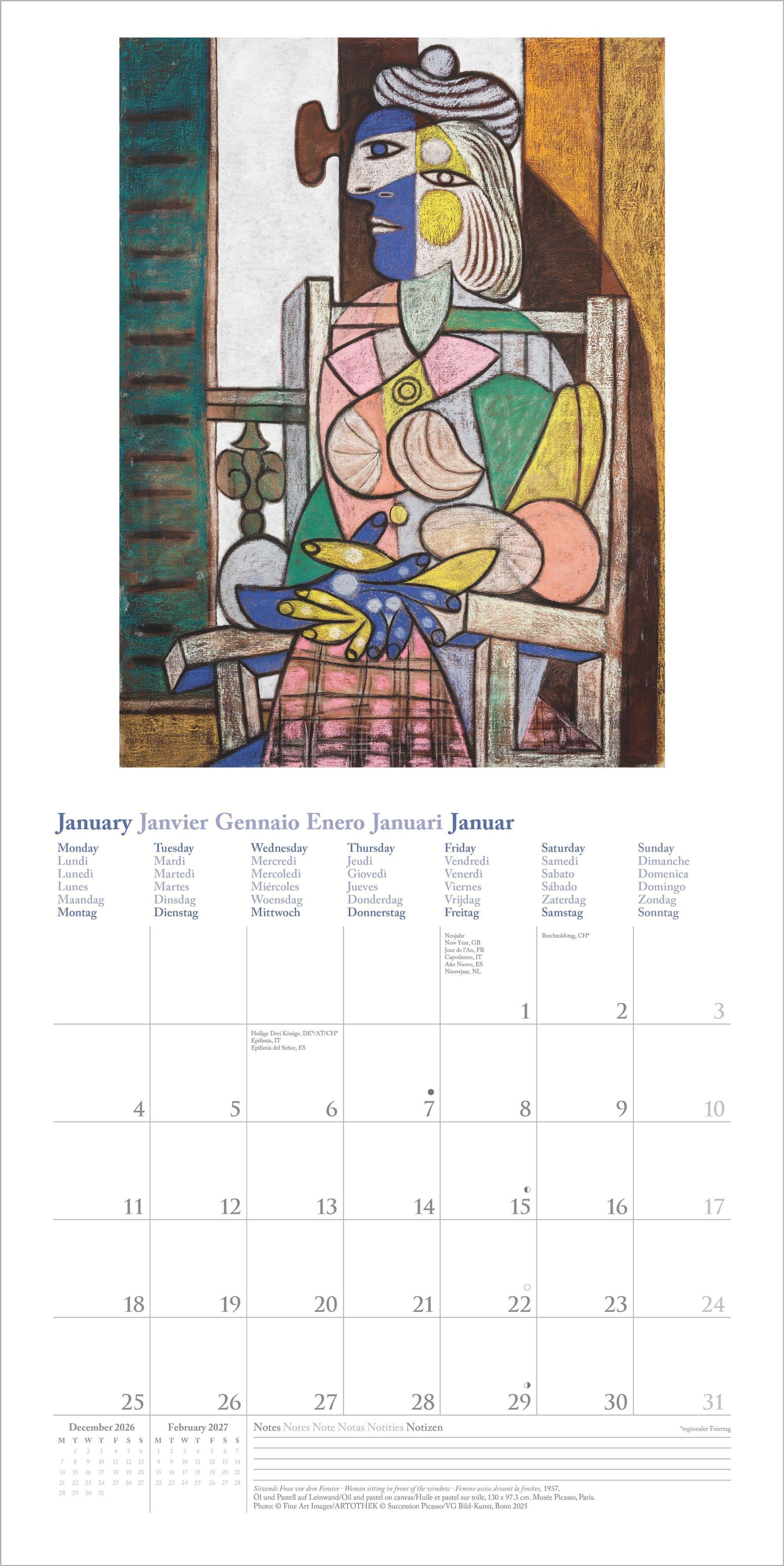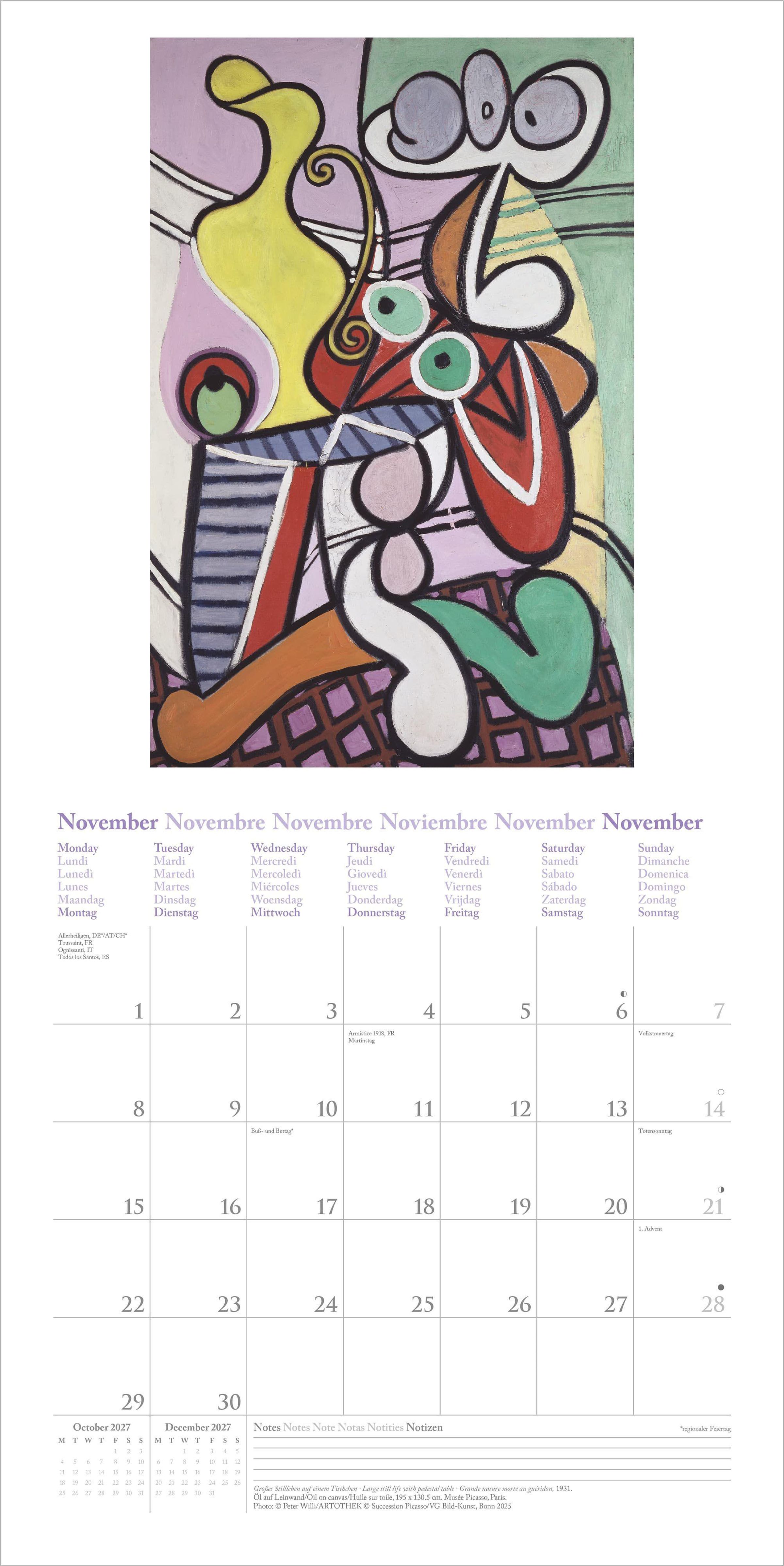 Dieser hochwertige Kunstkalender verbindet Picassos kreative Ausdruckskraft mit praktischer Funktionalität -- ein stilvolles Highlight an jeder Wand und ein inspirierender Begleiter für das Jahr 2027.