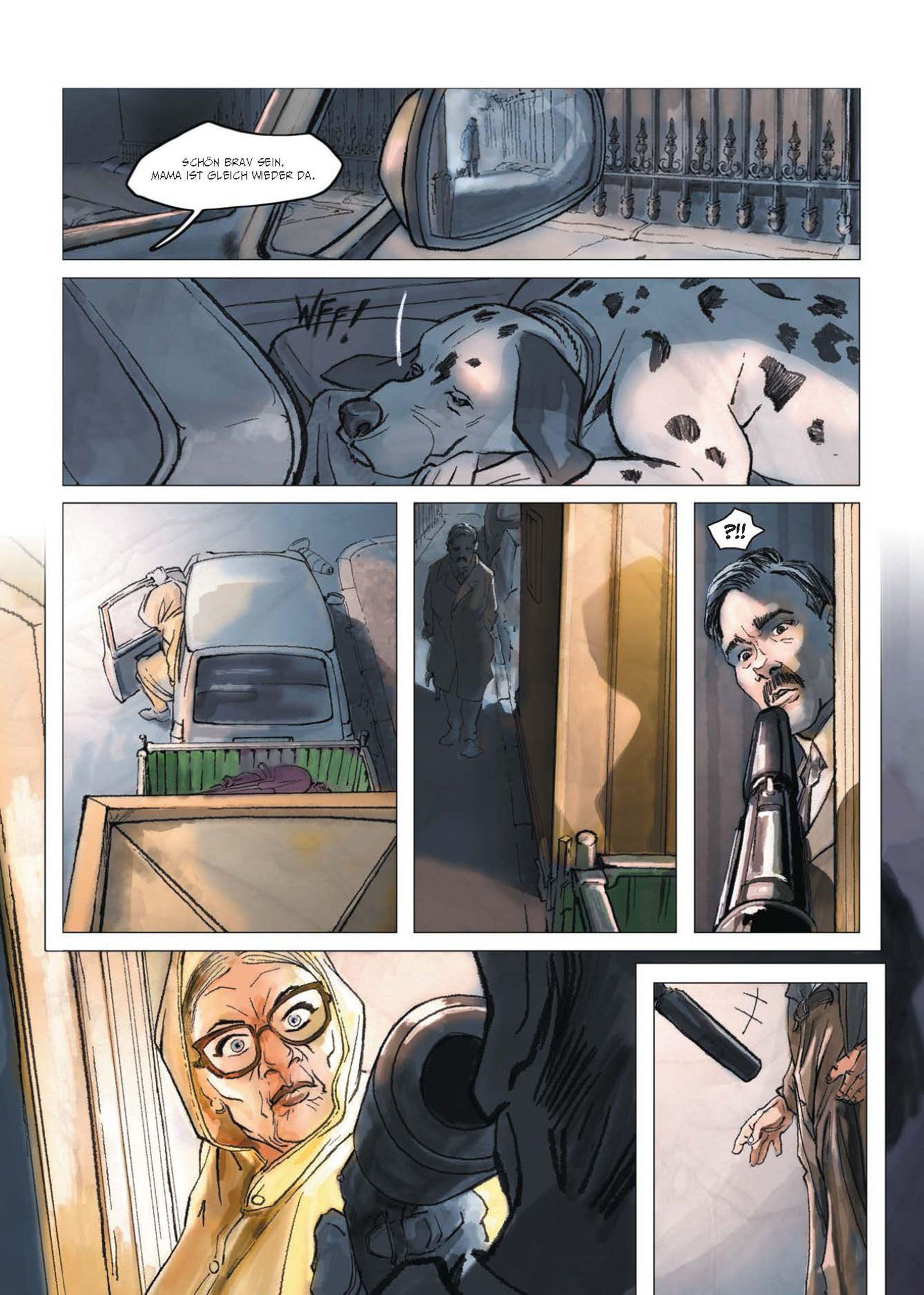 Abenddämmerung. Eine ältere Dame wartet in ihrem Auto. Der Mann, auf den sie wartet, kehrt vom Gassigehen nach Hause zurück. Die harmlos wirkenden Frau steigt aus und passt ihn ab. Dann zerfetzt eine großkalibrige Kugel seinen Schädel in Abertausend Fetzen. Mathilde, die sechzigjährige Auftragskillerin, hat ihren Auftrag ausgeführt. Vielleicht etwas brutaler als nötig, aber wen stört's?