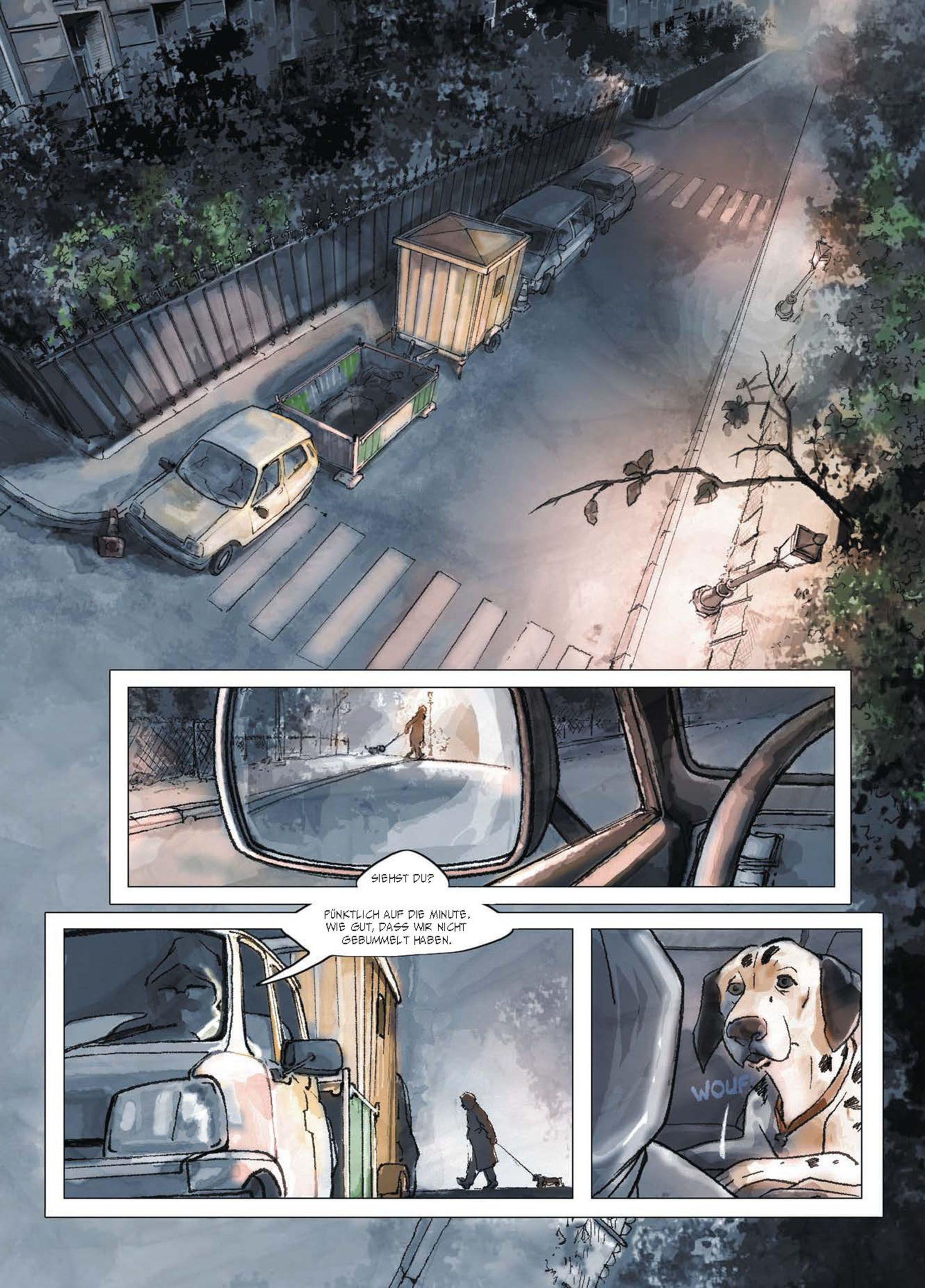 Der französische Romancier Pierre Lemaitre ('Wir sehen uns dort oben') erkundet in 'Auf den Hund gekommen' lustvoll die Dynamik zwischen schrägen Figuren im Kontext eines geradlinigen Thrillers. Dominique Monférys Illustrationen, die realistischen Detailreichtum und liebevollen Karikaturstil elegant zusammenführen, fangen diese besondere Erzählstimme perfekt ein.