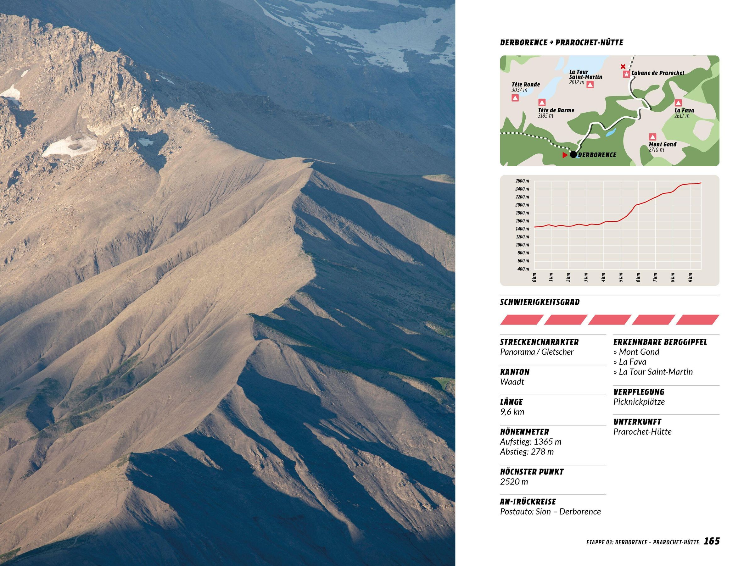 Ob Routinier oder Anfängerin, in diesem Handbuch findet ihr praktische Informationen zu jeder Etappe: Schwierigkeitsgrad, Höhe, Höhenunterschied, Anreise und vieles mehr. Außerdem enthält es Tipps zur Planung und Ausrüstung, damit ihr die spektakulären Touren gut vorbereitet geniessen könnt.