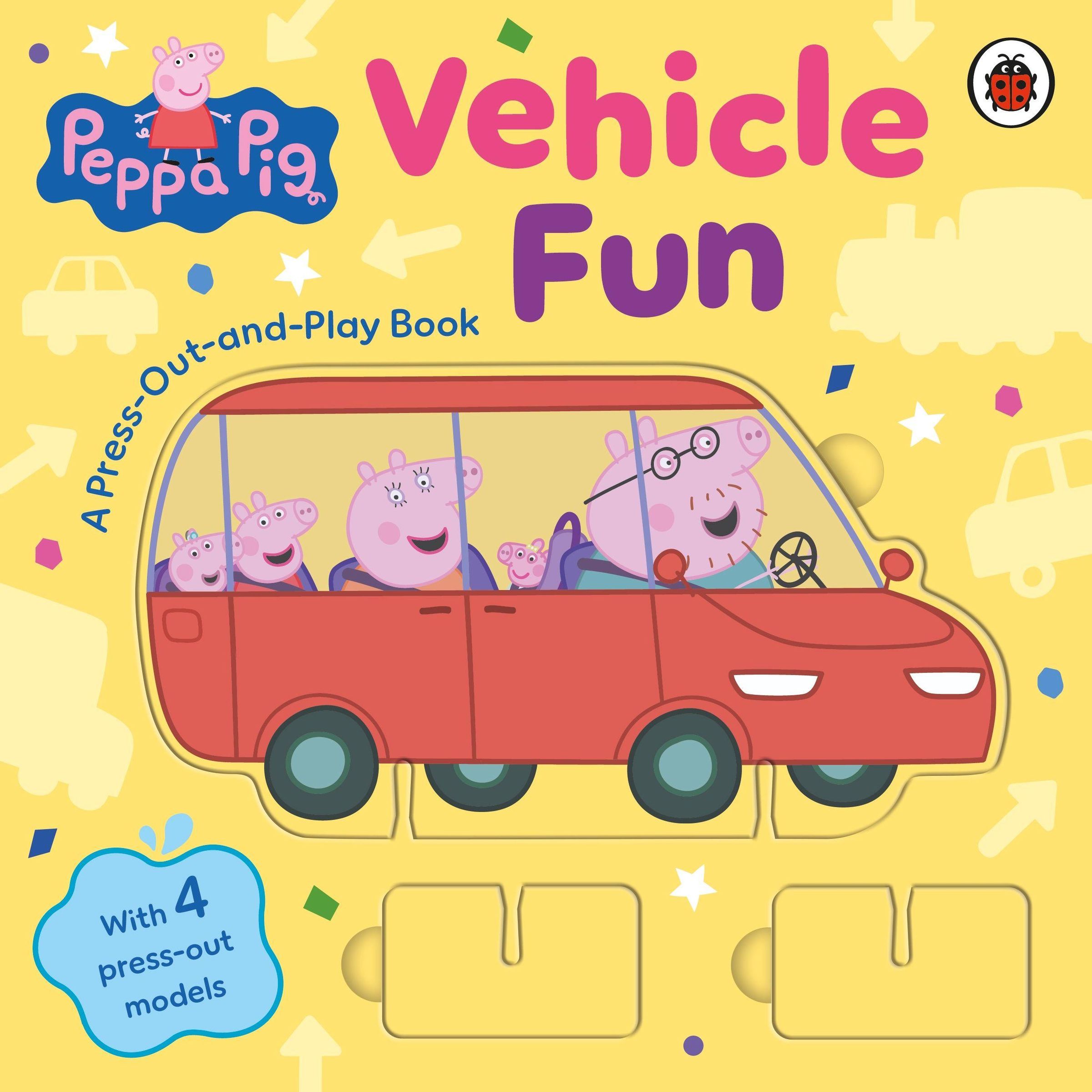 Press-out the vehicle pieces and play along with the story. Then, use your press-out pieces to go on your own adventures with Peppa!