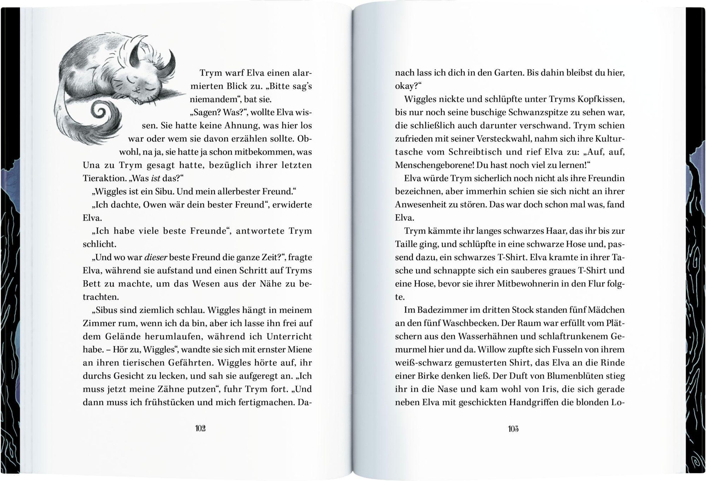 Hier trifft Elva auf Mitschüler und Mitschülerinnen, die alle halb Mensch und halb ... etwas anderes sind. Doch hinter den Mauern der Schule schwelt ein alter Konflikt und als einer ihrer neuen Freunde spurlos verschwindet, muss Elva eine Entscheidung treffen. Kann sie sich ihrer größten Angst stellen: ihrer eigenen Magie? Kann sie einen Freund retten, dessen Schicksal sie selbst vorhergesehen hat?