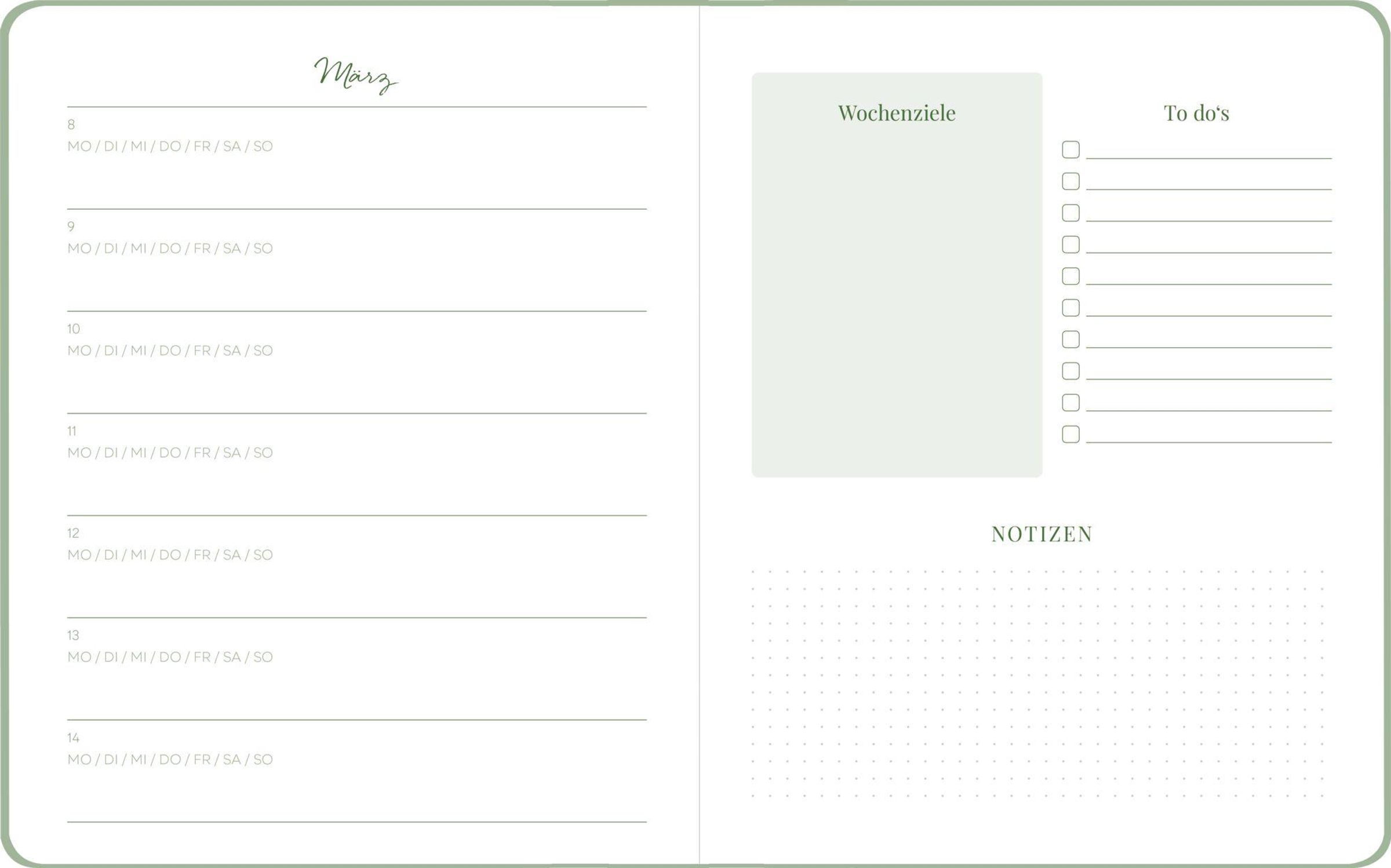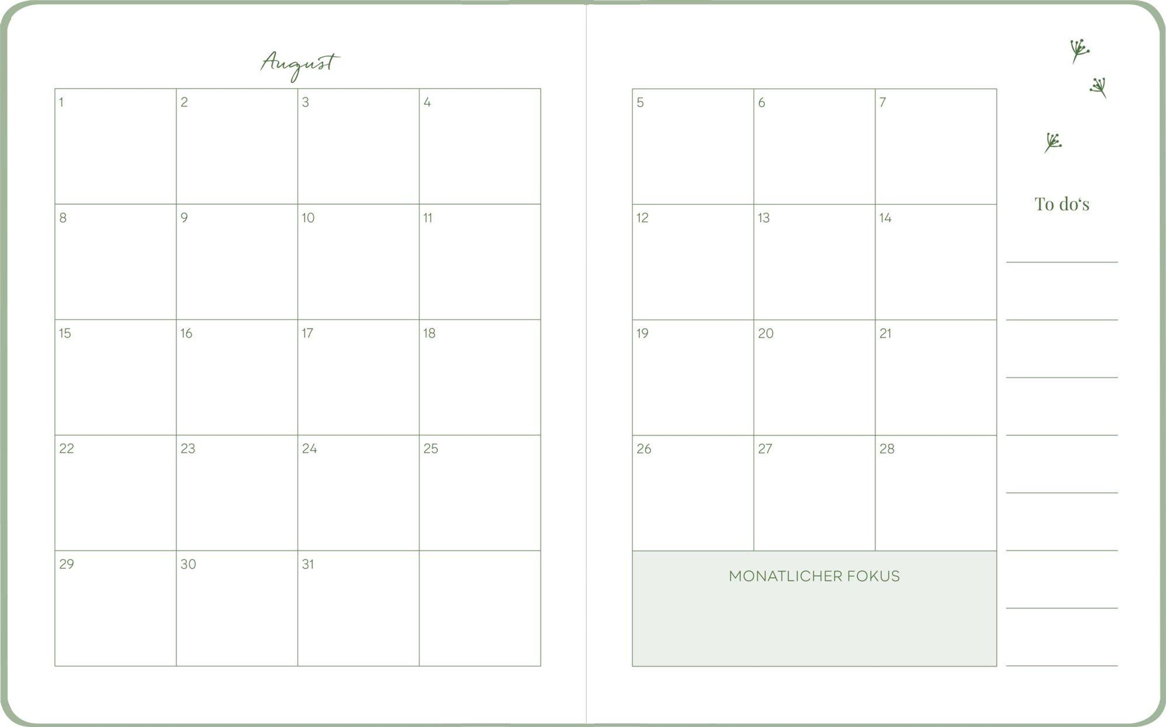 Dieser Planer ist mehr als ein Kalender - er ist Ausdruck deiner Persönlichkeit. Das schlichte, aber hochwertige Design passt in jedes Lebenskonzept - ob kreativ, organisiert oder träumerisch. Er begleitet dich durch deinen Alltag, inspiriert zur Selbstorganisation und schenkt Freude bei jeder Nutzung.