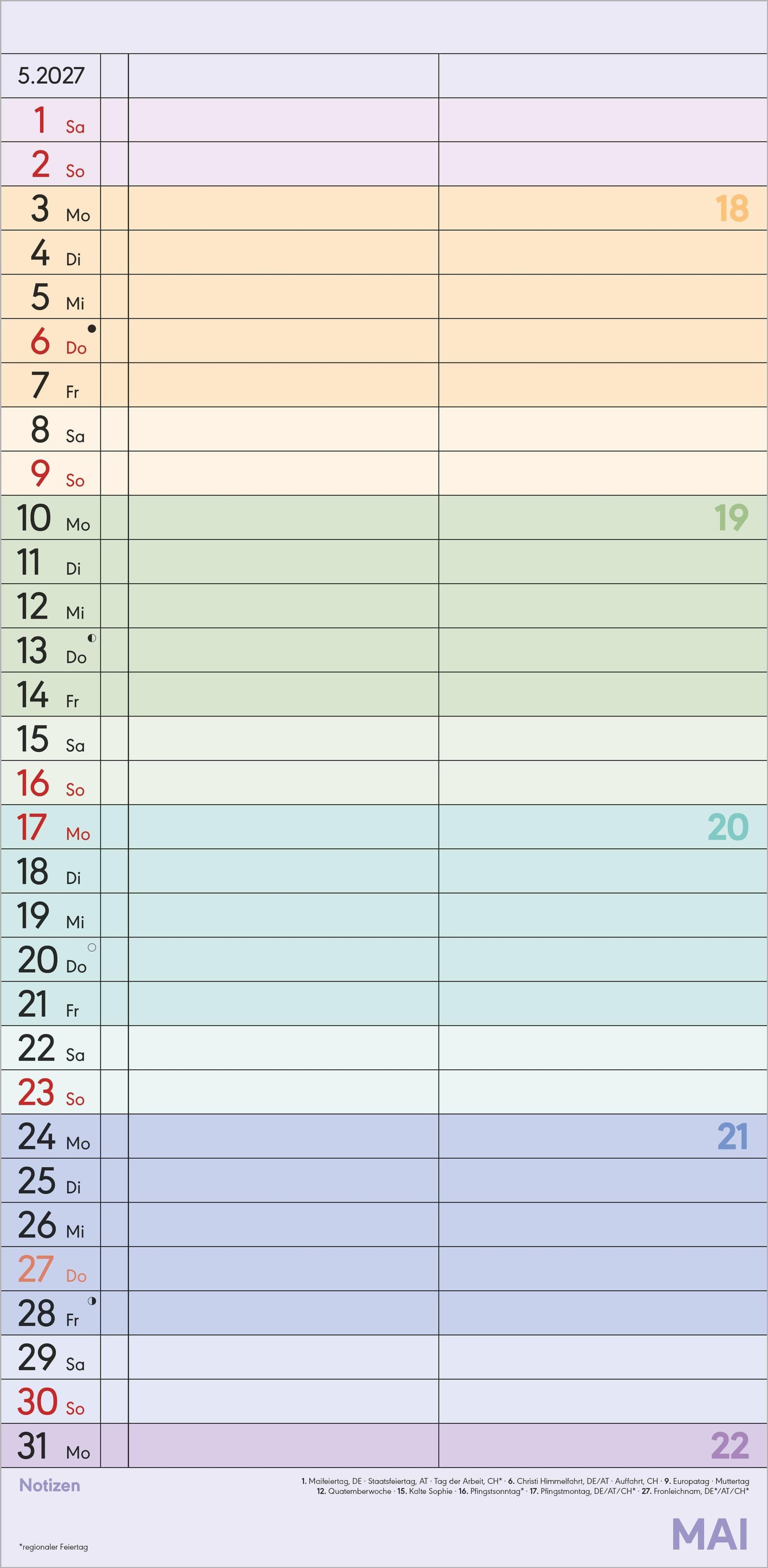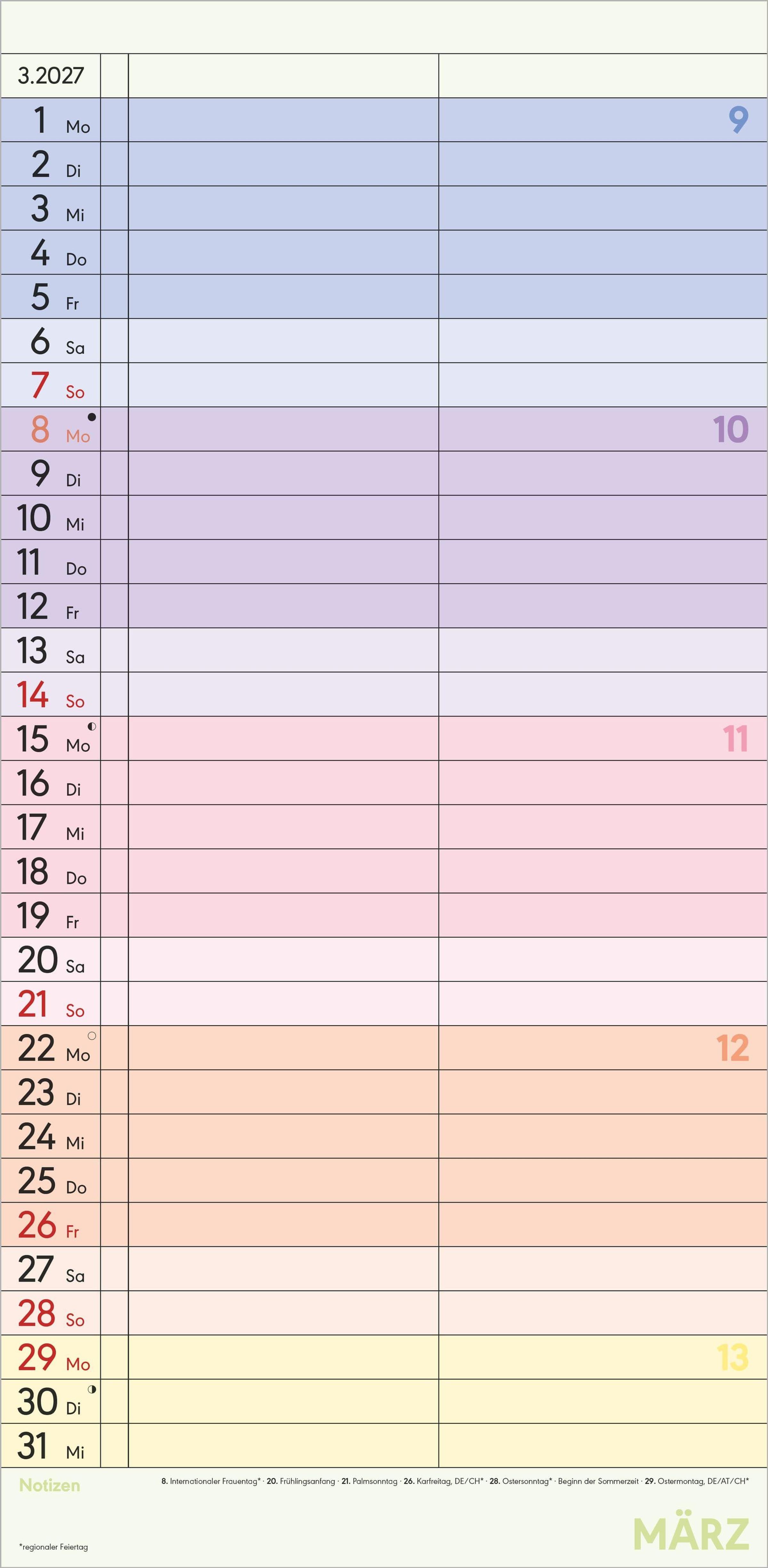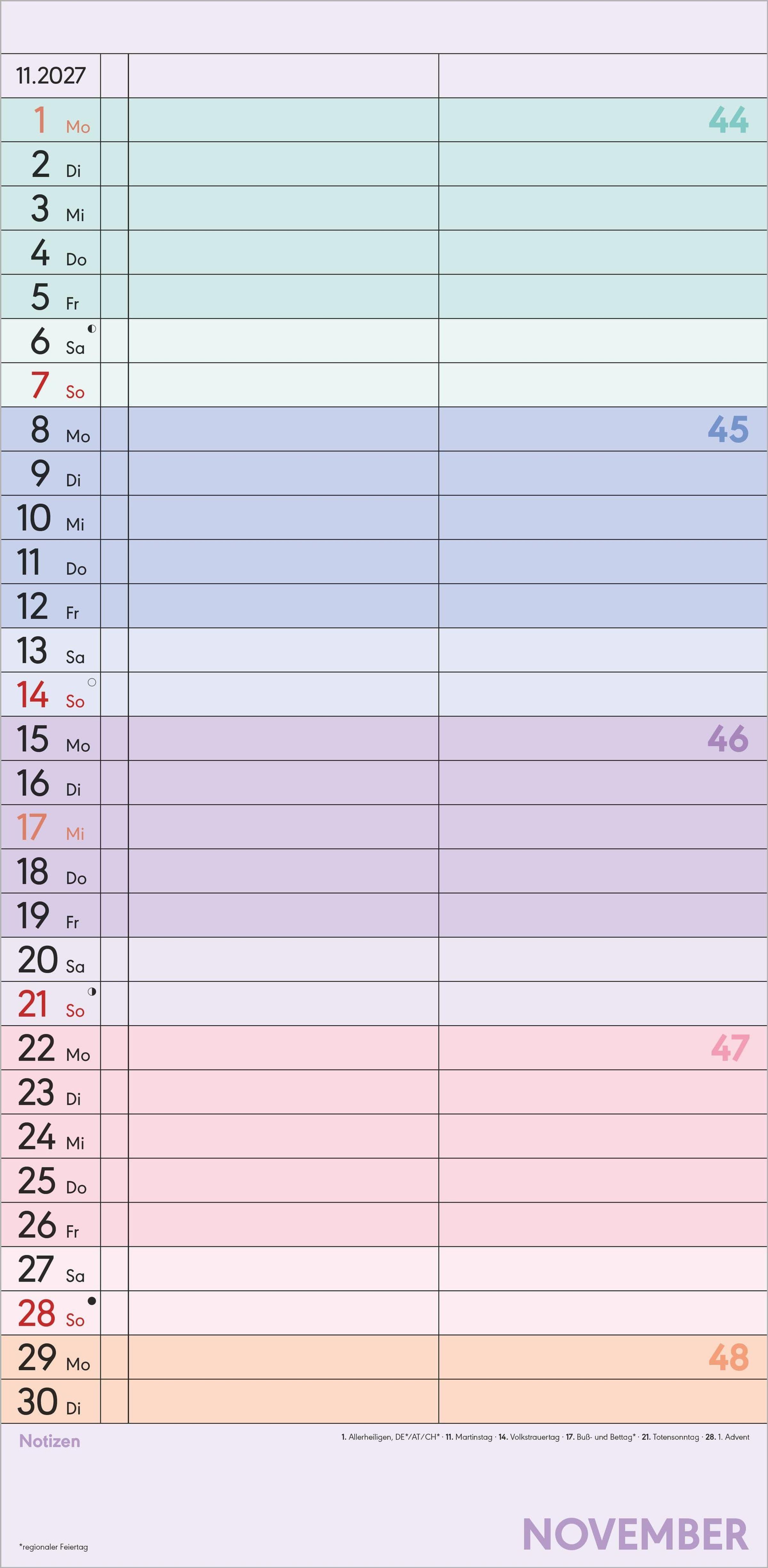 Deutschsprachiges Kalendarium: Mit Feiertagen für DE/AT/CH
