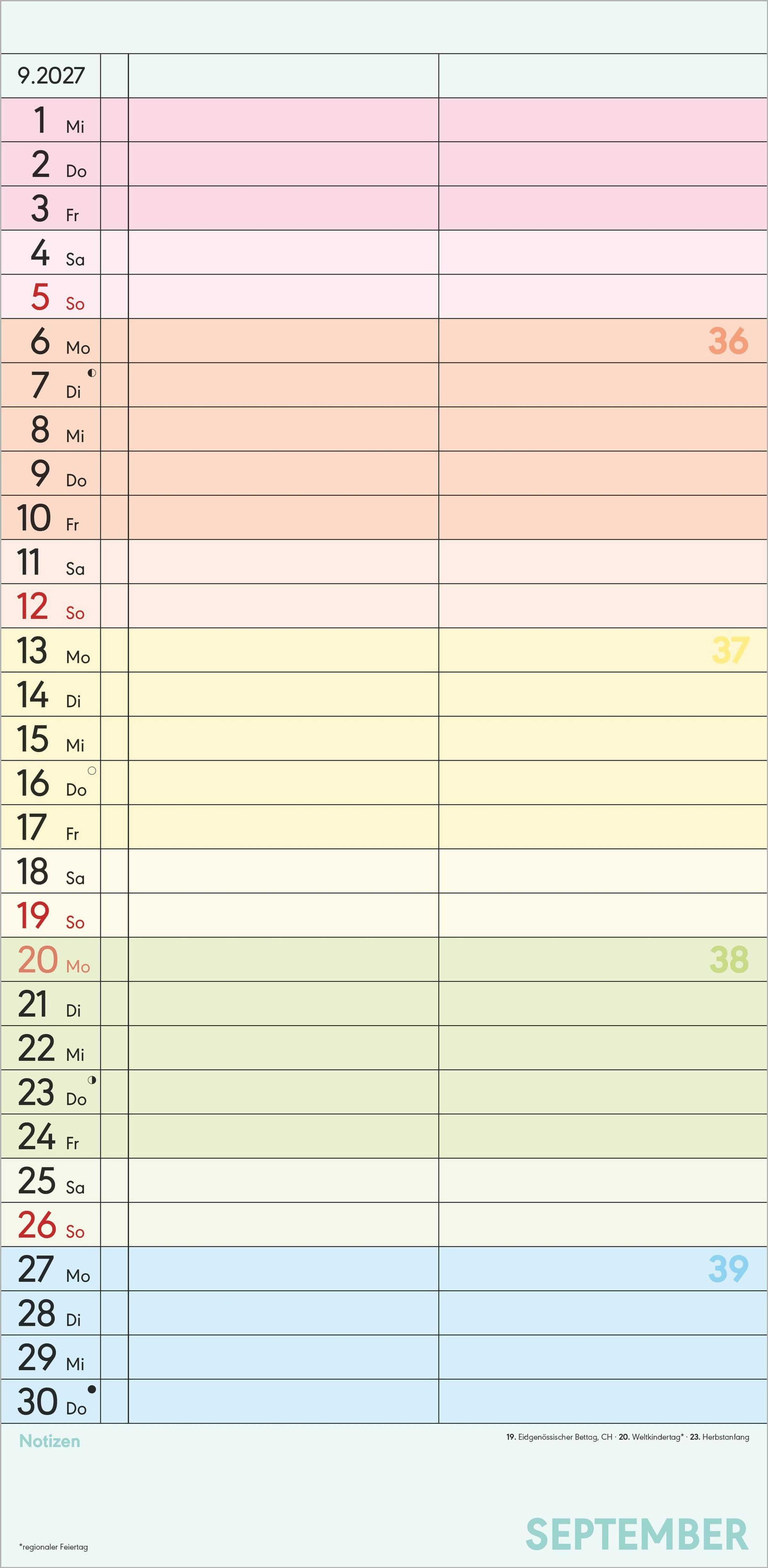 2 Spalten: Ideal für private, familiäre oder berufliche Termine
