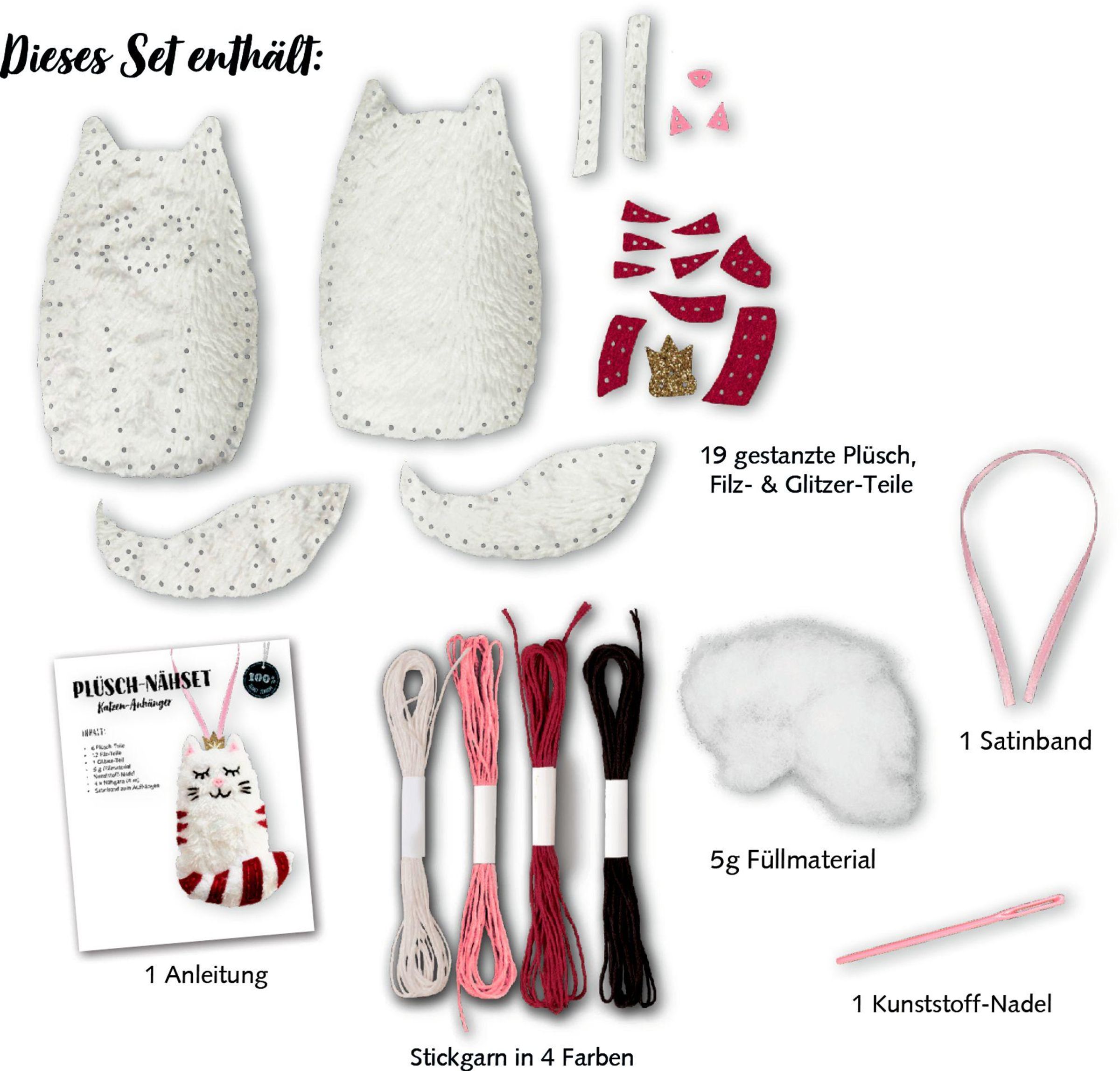 Kuscheliges Plüsch-Nähset mit Katze oder Einhorn Mit Schritt-für-Schritt-Anleitung für sicheres Gelingen Hochwertige Plüsch-, Filz- und Glitzerstoffe Kreativer Nähspaß für Kinder ab 8 Jahren Dieses Kreativset lädt Kinder dazu ein, erste Näherfahrungen zu sammeln und ihr eigenes Kuscheltier zu gestalten. Ob Katze oder Einhorn - die weichen Materialien und die klare Anleitung sorgen für Freude am Schaffen und ein Ergebnis, das lange Freude schenkt. Eine tolle Beschäftigung für Kinder ab 8 Jahren, die Feinmotorik und Geduld fördert.