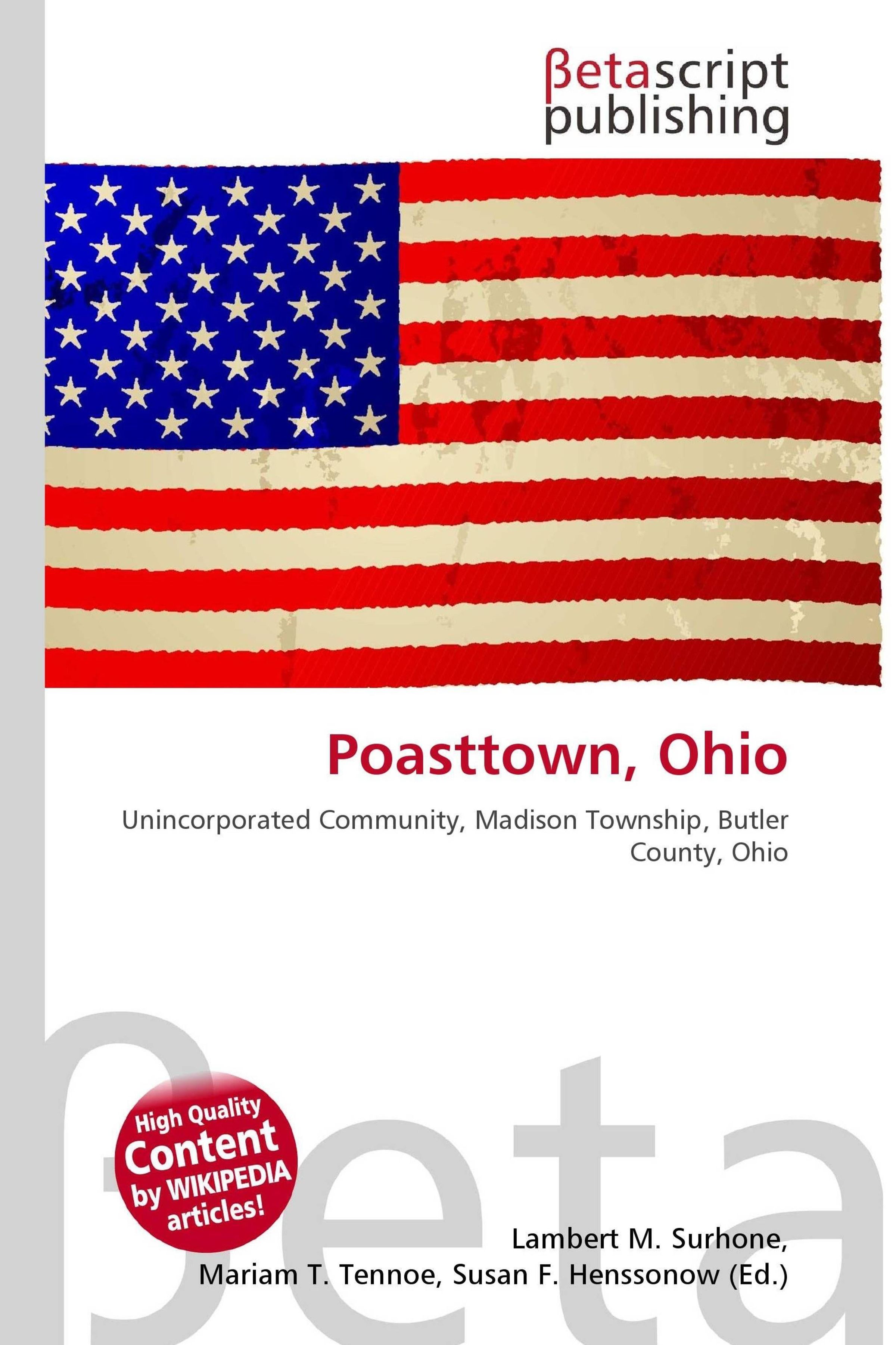 Please note that the content of this book primarily consists of articles available from Wikipedia or other free sources online. Poasttown is an unincorporated community located in northeastern Madison Township, Butler County, Ohio, United States, on State Route 4, about one mile north of Middletown in Section 12 of T2R4 of the Congress Lands. It was laid out in 1818 by Peter Post as the town of West Liberty. A post office with the name Poast Town was established in 1848 but closed in 1934. Mail is provided through the Middletown post office, it is located in the Middletown telephone exchange. It is in the Madison Local School District. Madison Township is one of thirteen townships in Butler County, Ohio, United States. Located in northeastern Butler County just west of Middletown, it had a population of 8, 611 people in 2000, up from 8, 547 in 1990. While it surrounds the city of Trenton, the city is no longer part of the township. It is named for James Madison, President of the United States at the time of its creation in 1810, and is one of twenty Madison Townships statewide.