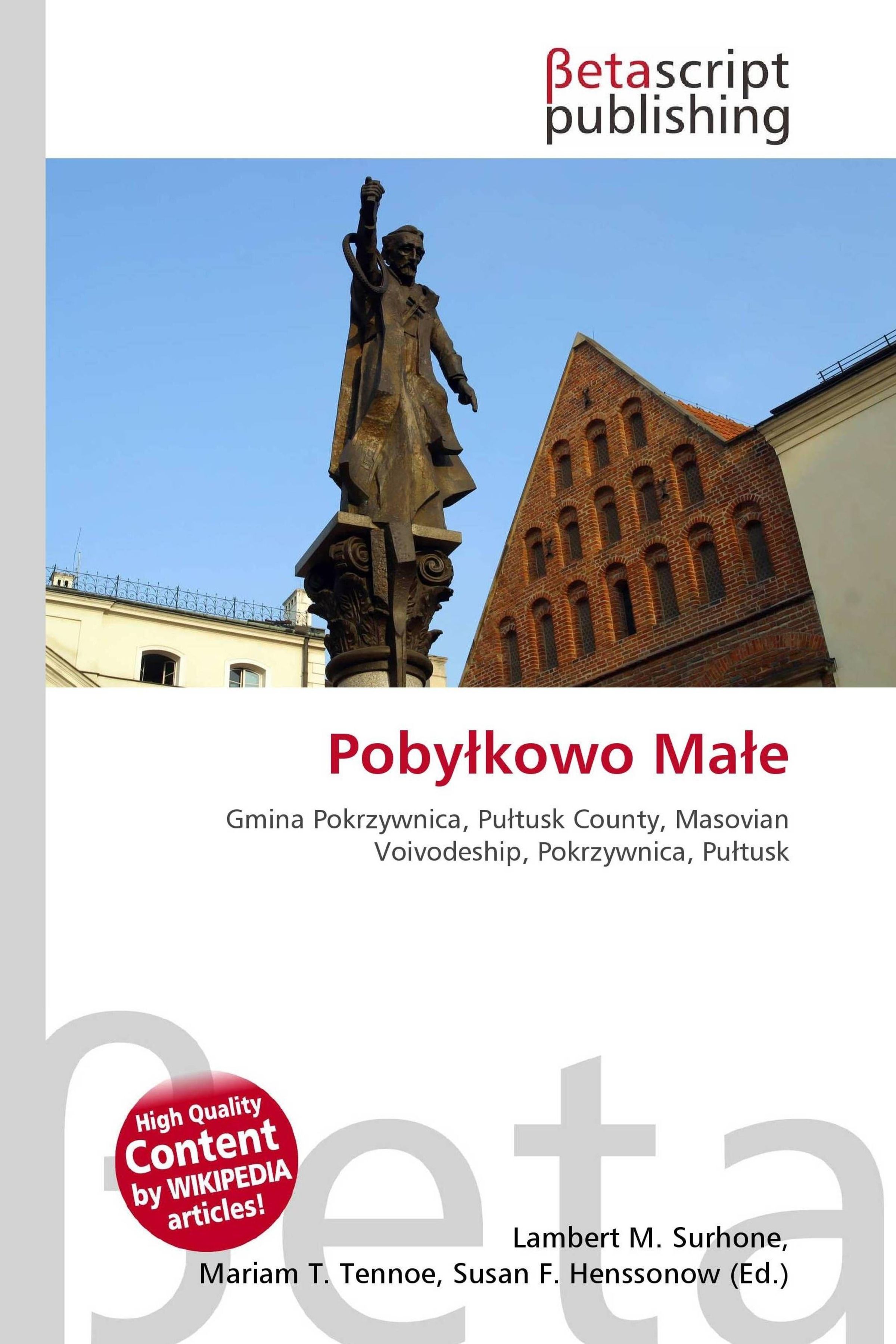 "Betascript Publishing" oben, "Pobyłkowo Małe" in Rot. Statue vor Backsteingebäude, blauer Himmel im Hintergrund., Buch
